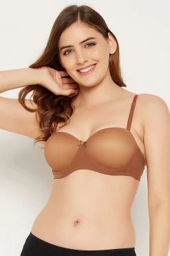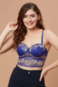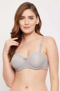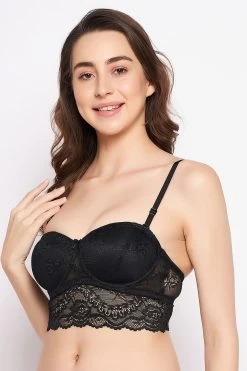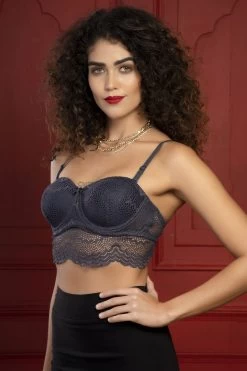 Padded Underwired Full Cup Strapless Longline Bralette In Dark Grey With Detachable Straps – Lace