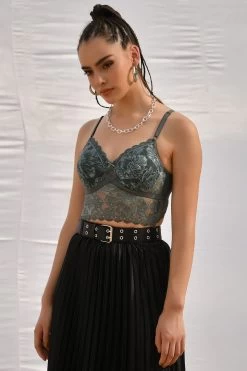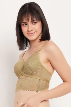 Padded Underwired Full Cup Longline Bralette In Olive Green – Lace