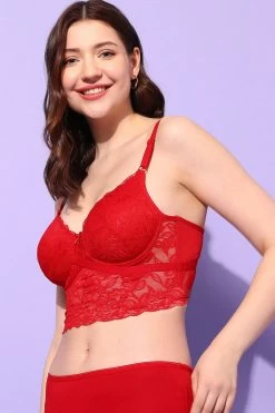 Padded Underwired Full Cup Longline Bralette In Maroon – Lace