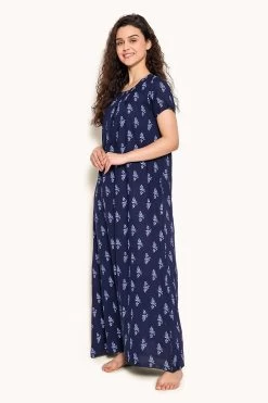 Maternity Leaf Print Short Night Dress In White – Rayon