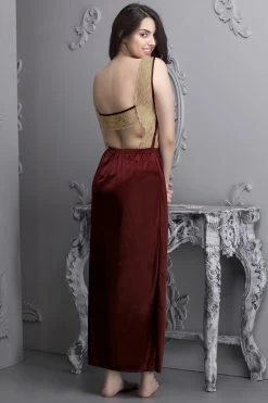 7 Pc Nightwear Set In Maroon- Satin