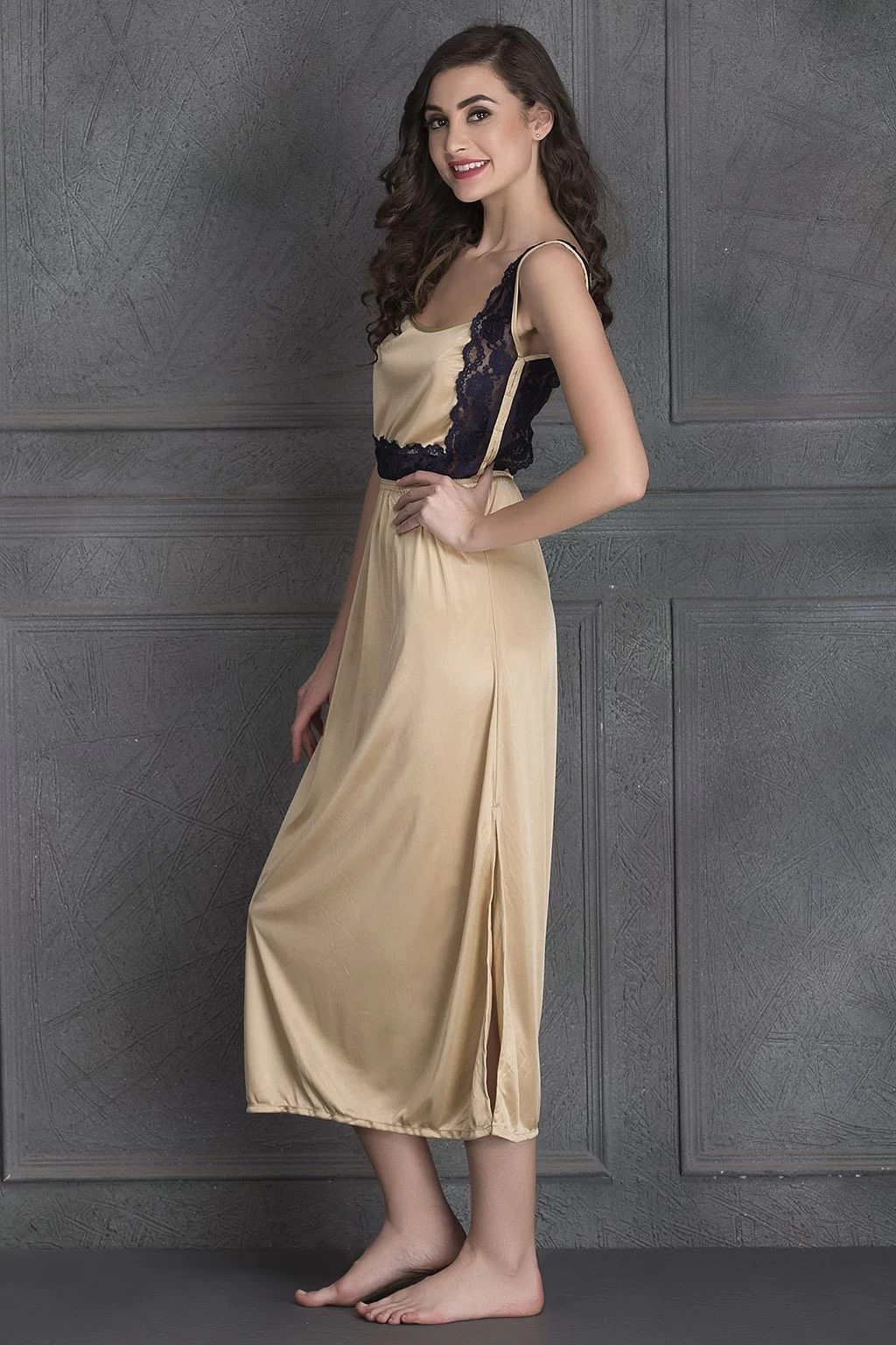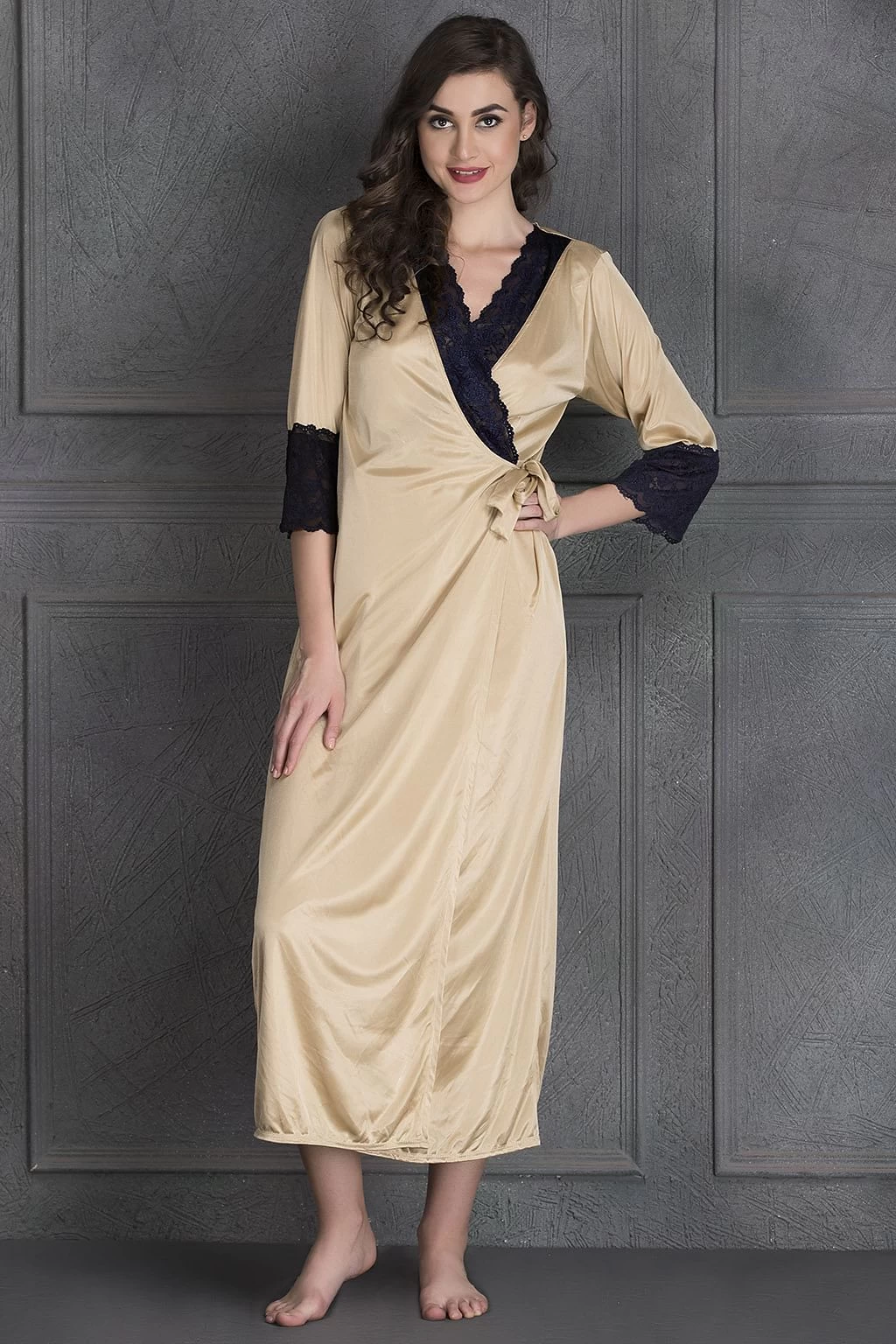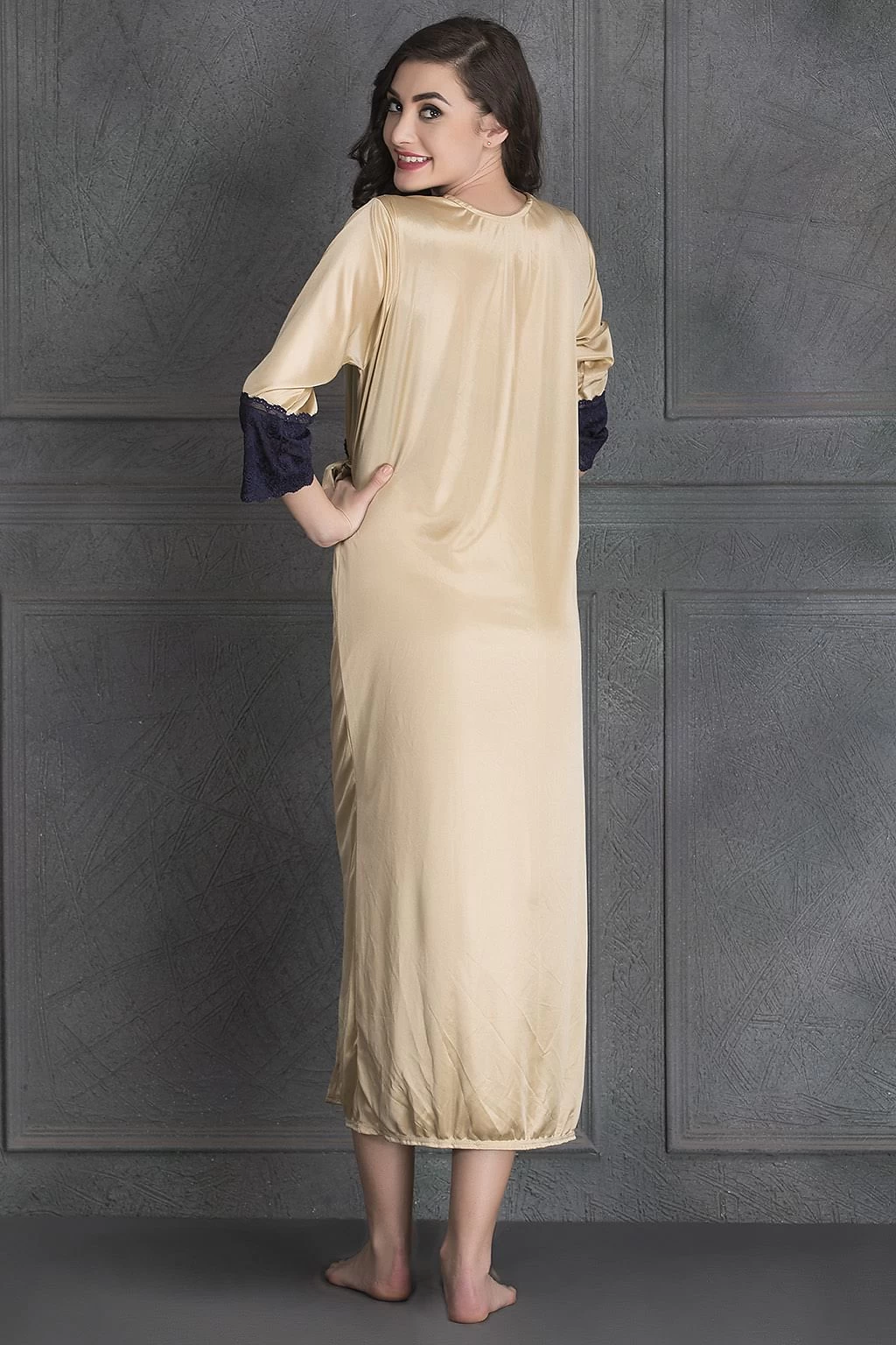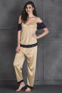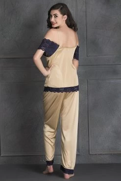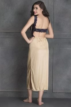A value combo with free size, this seven-piece nightwear set is a dream come true. Made with poly-knit satin fabric, this nightwear set feels soft on the skin and looks beautiful too. With its excellent drape, smooth feel and luxurious look, this set makes an excellent gifting choice. The striking black lace on it makes it look more appealing. Since this nightwear set has a comfortable fabric, it is an ideal purchase to get a good night’s sleep. Additionally, this skin-coloured nightwear set will fit any size, be it small, medium or large.
