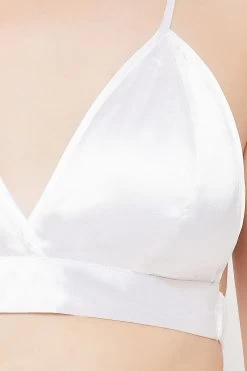 White button down shirt, shorts & bralette set crafted with butter-soft satin fabric.