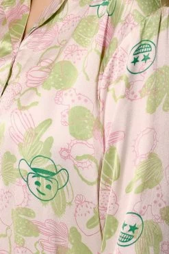 Cactus & Emoji Print 3 Piece Nightwear Set In White – Satin