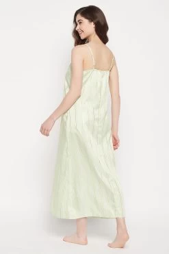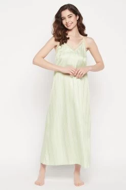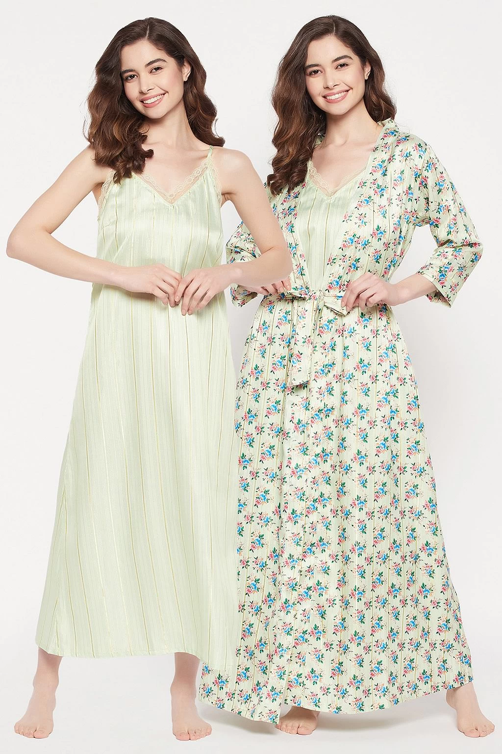 Sage green long night dress & robe set crafted with butter-soft & comfortable satin fabric.