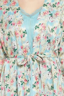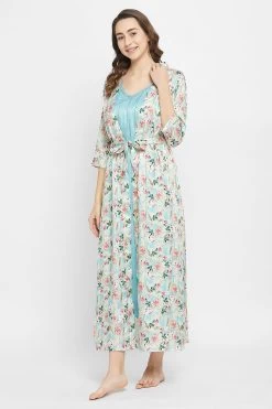 Sky blue long night dress & robe set crafted with butter-soft & comfortable satin fabric.
