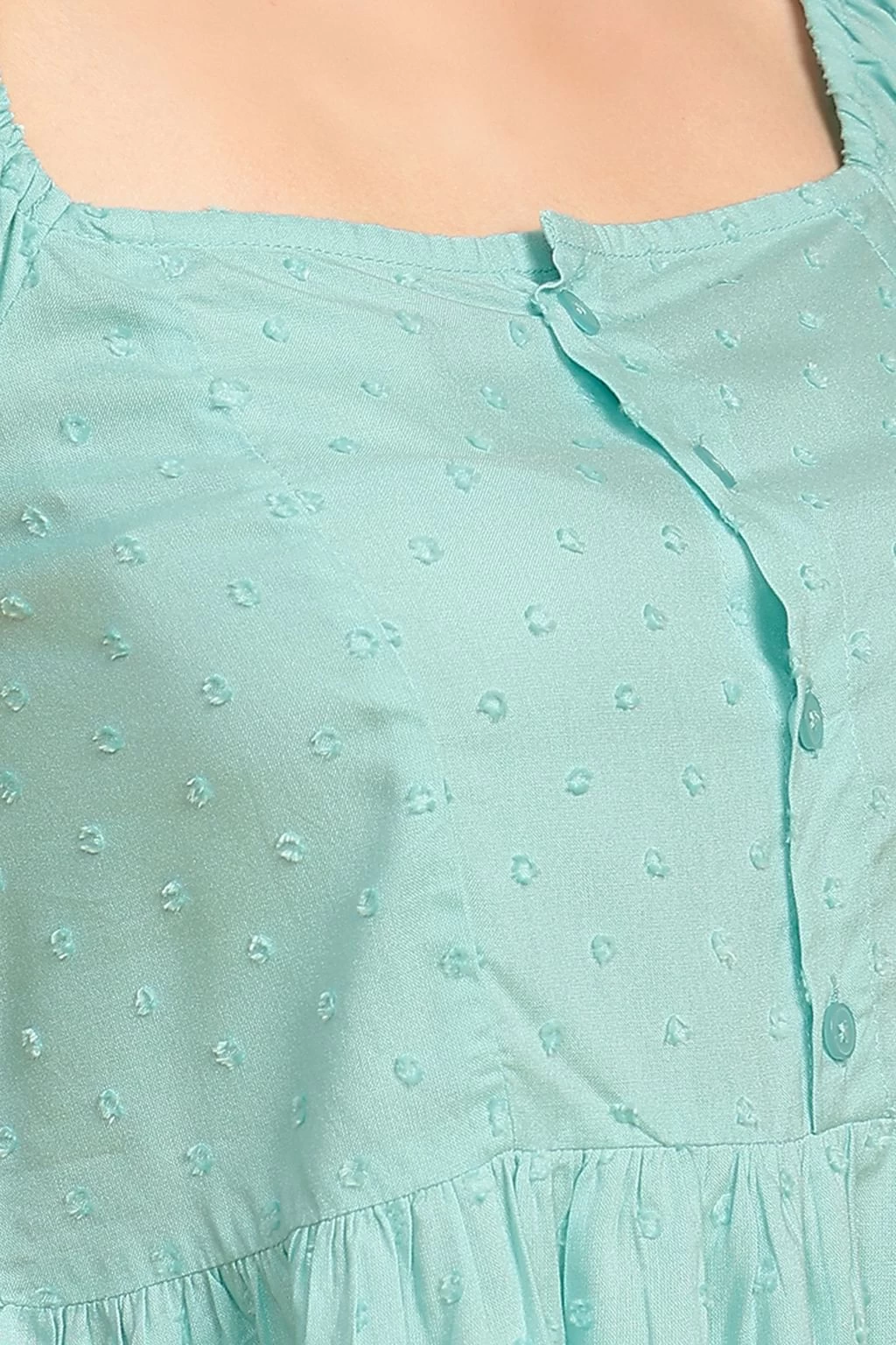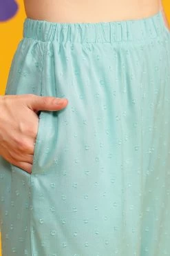 Sky blue solid peplum top & pyjama set crafted with soft rayon fabric.