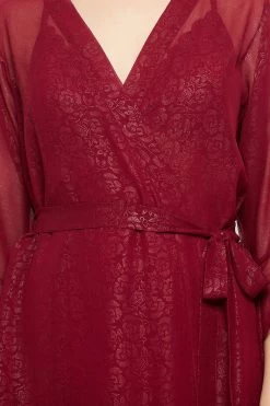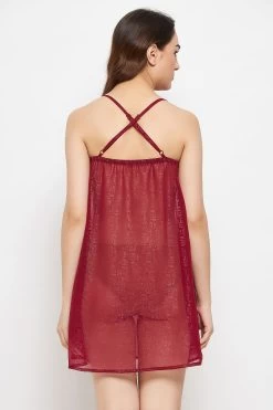 Chic Basic Self-Patterned Robe & Nighty Set In Maroon – Georgette