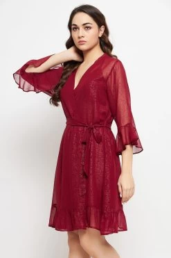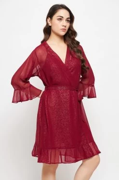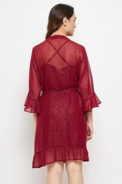 Be the first to review “Chic Basic Self-Patterned Robe & Nighty Set In Maroon – Georgette” Cancel reply