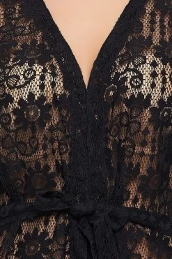 Chic Basic Sheer Robe In Black – Lace