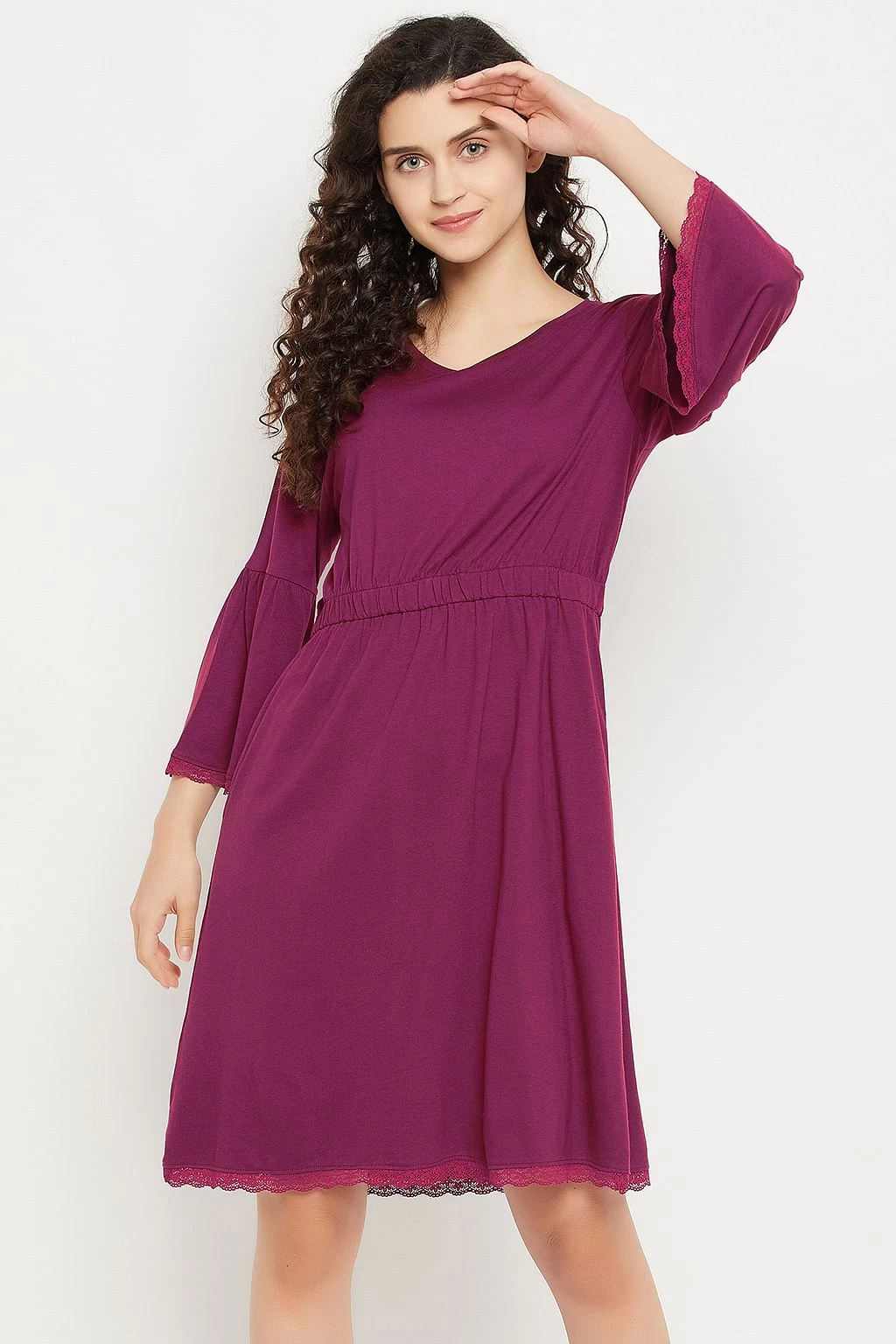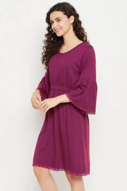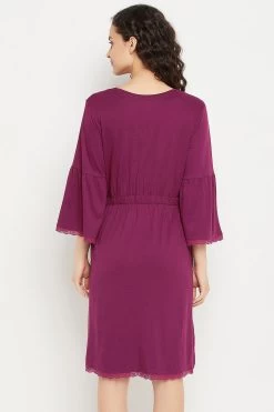 Chic Basic Button Down Shirt & Pyjama Set In Wine Colour – Satin