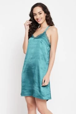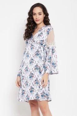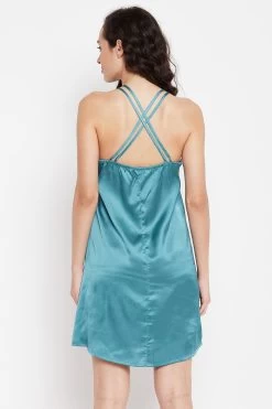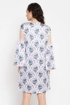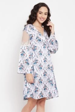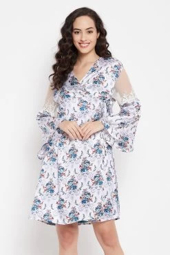 Blue short nighty and white robe set crafted with luxurious satin fabric.