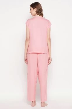 Chic Basic Top & Pyjama Set In Baby Pink – Rayon