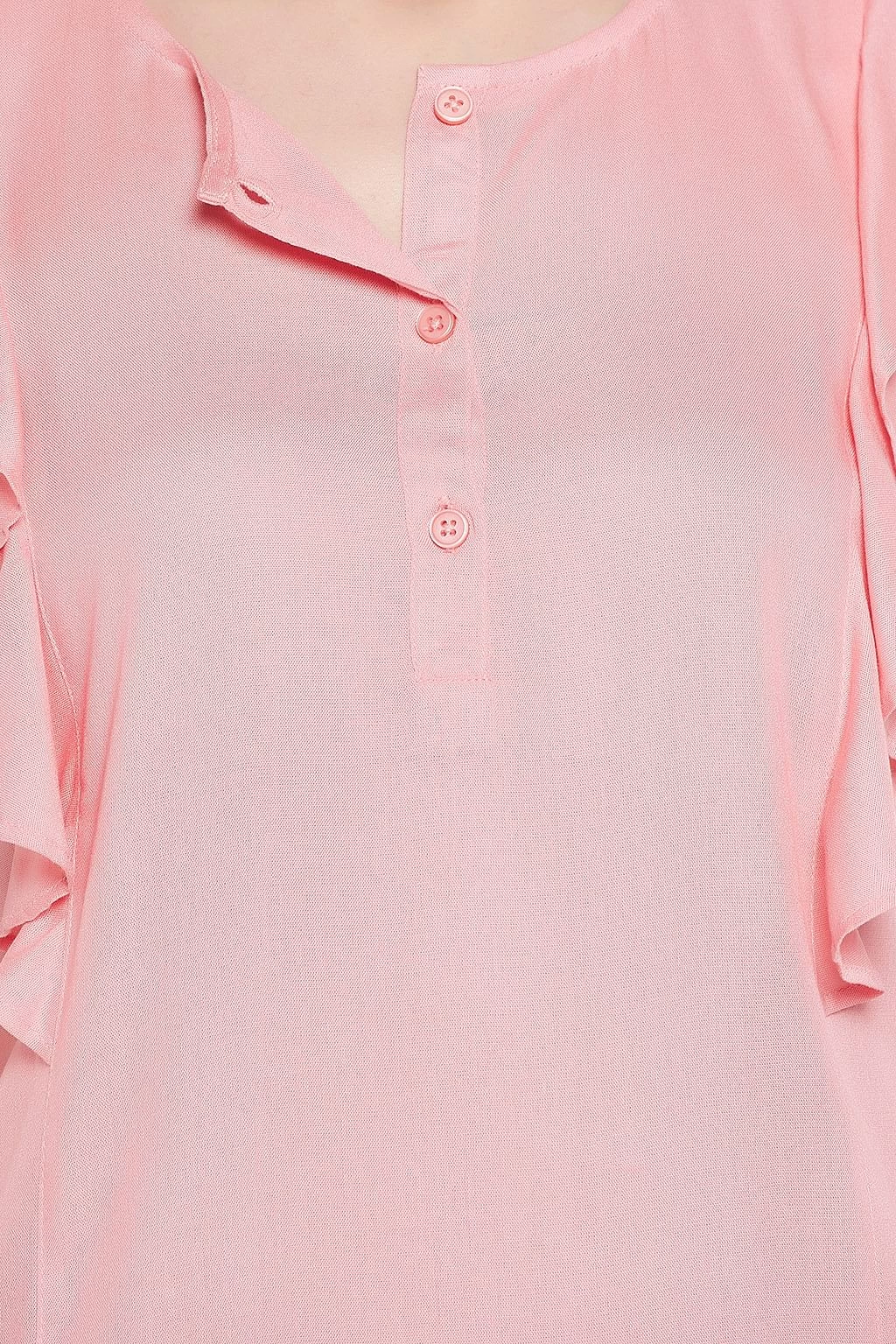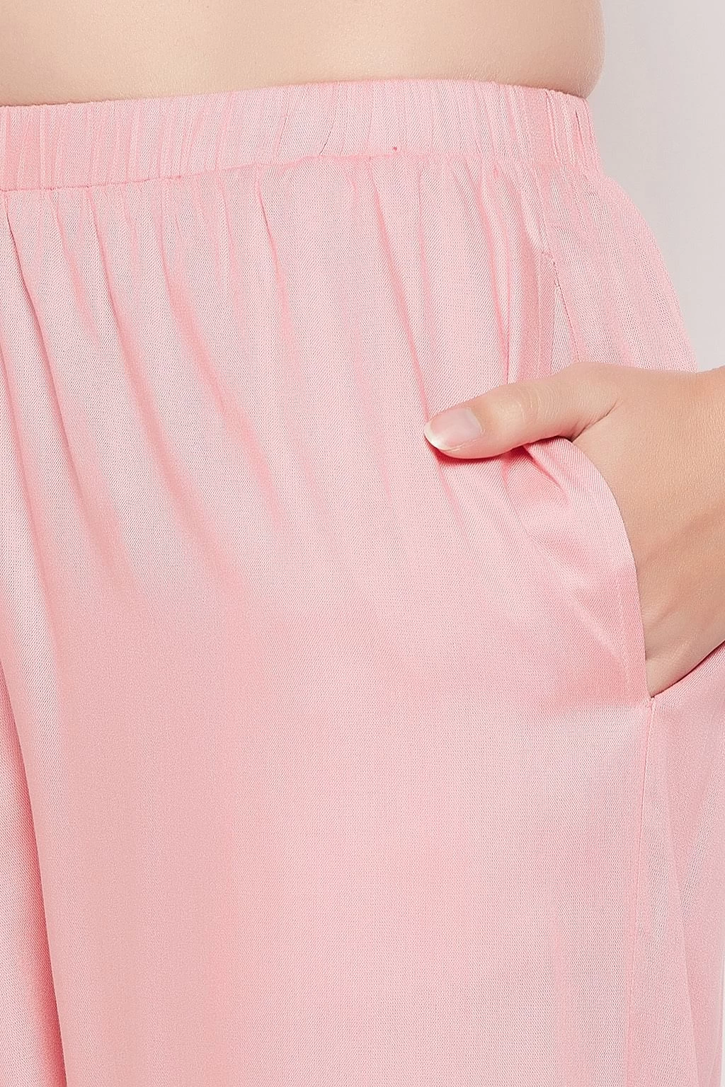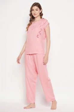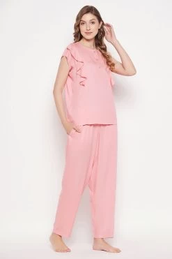 Baby pink top & pyjama set crafted with soft rayon fabric.