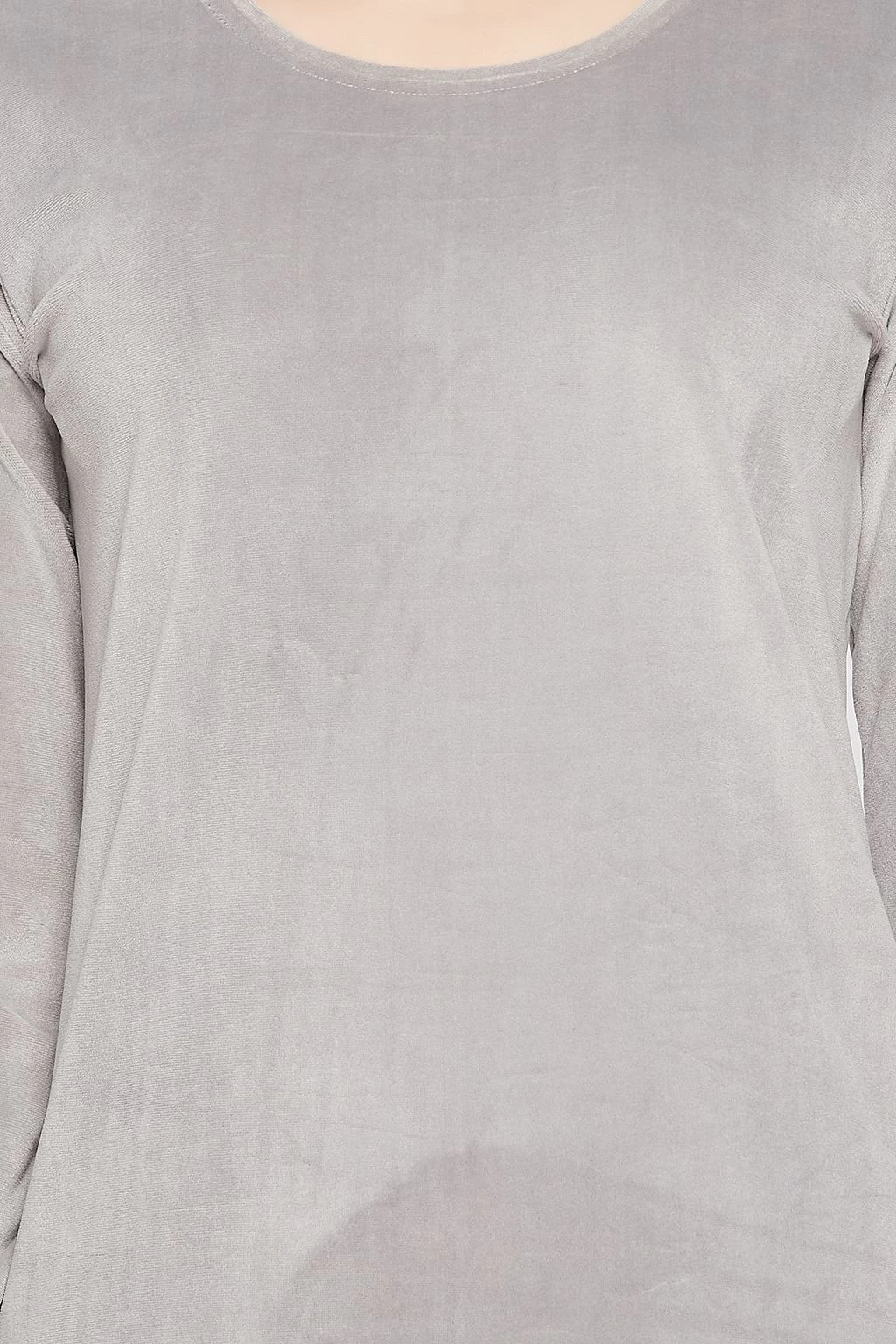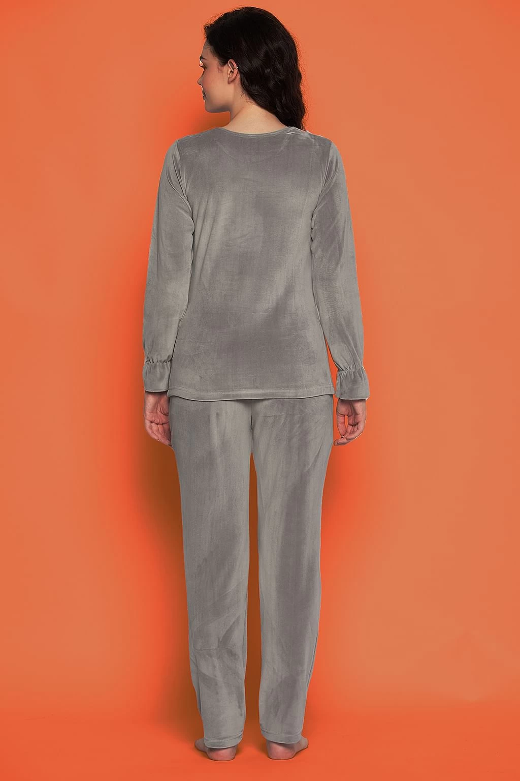 Grey top and pyjama set crafted with soft & cosy velour fabric.