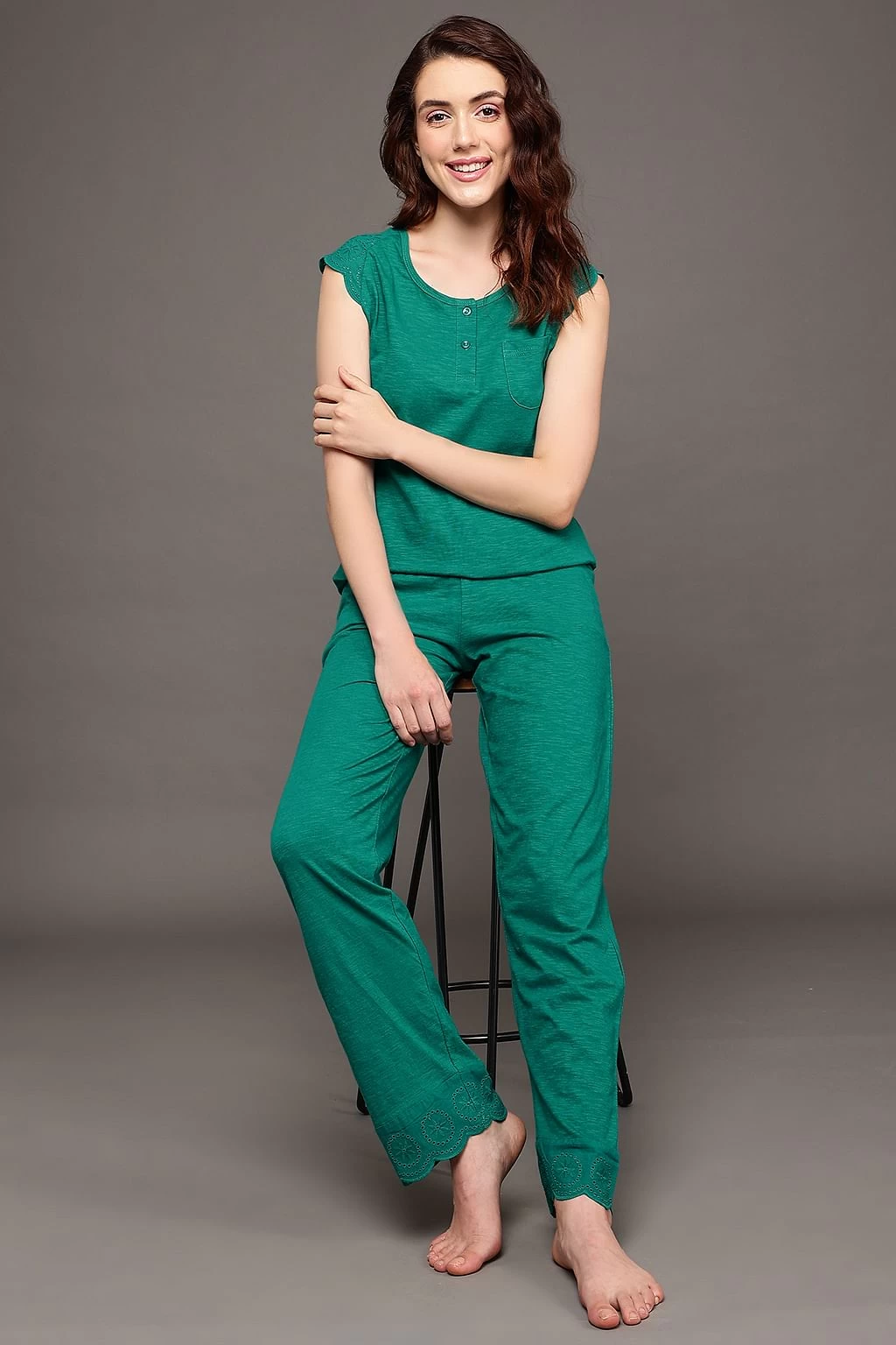 Be the first to review “Chic Basic Top & Pyjama Set In Teal Green – 100% Cotton” Cancel reply