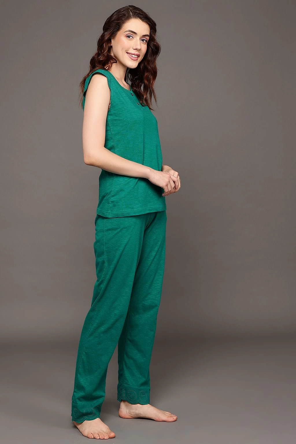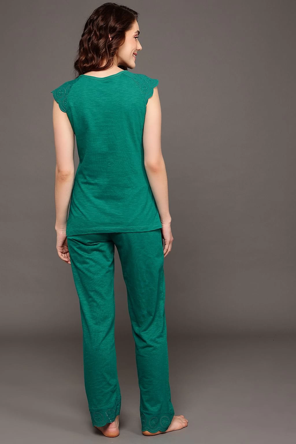 Teal green top & pyjama set crafted with soft & premium 100% cotton fabric.