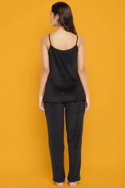Black top, pyjama & shrug set crafted with soft & cosy velour fabric.
