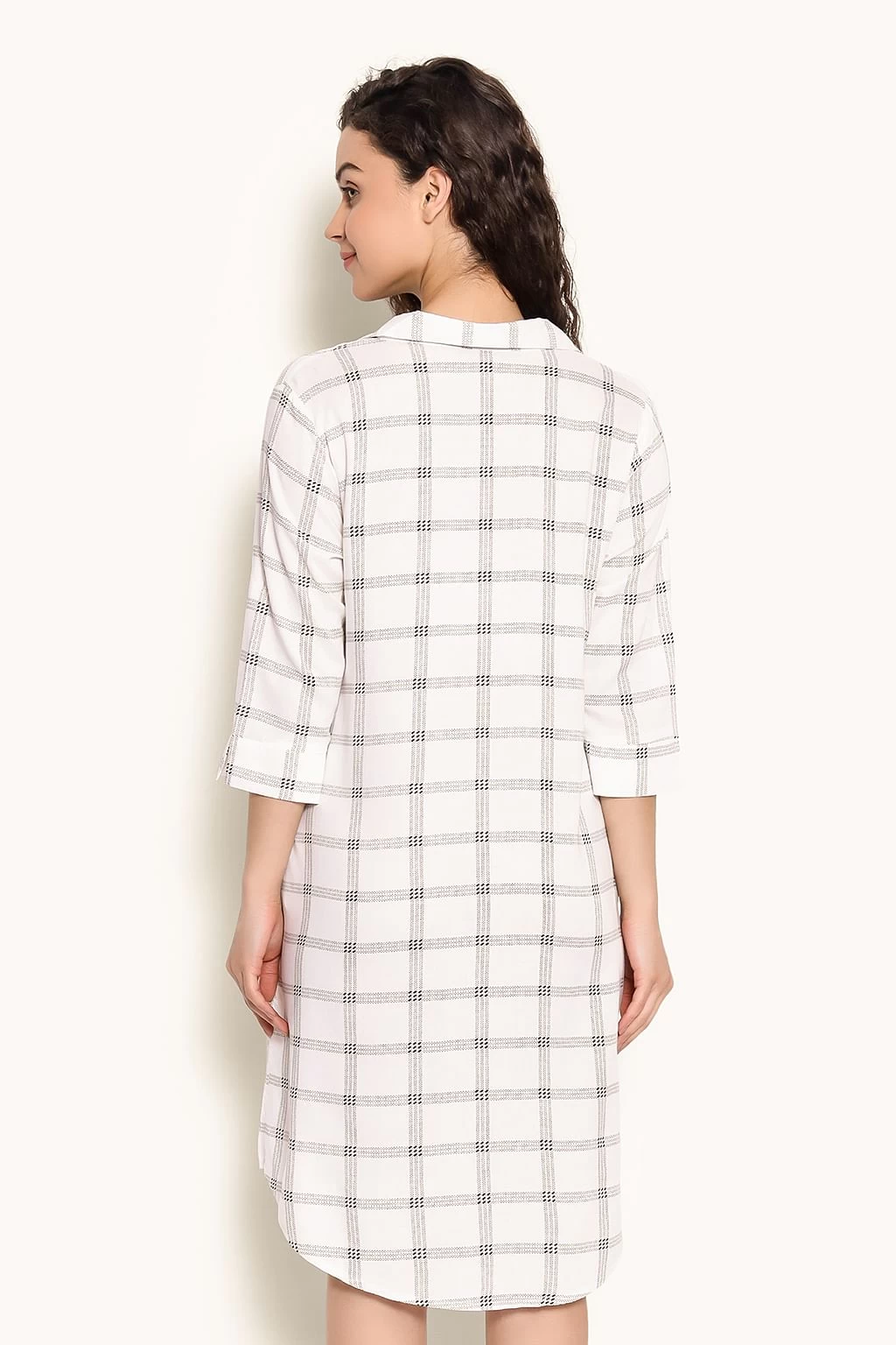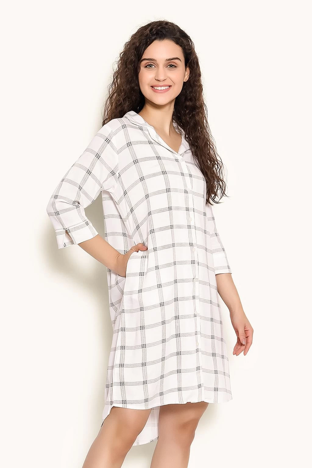 Classic Checks Button Down Sleep Shirt In White – Rayon
