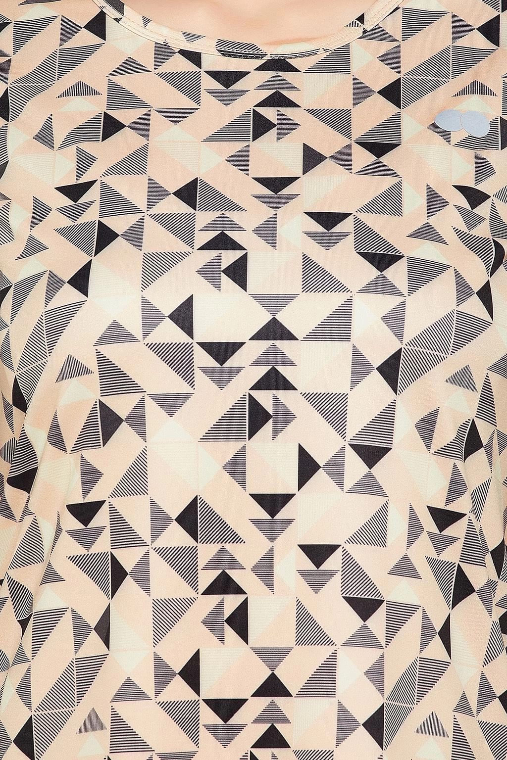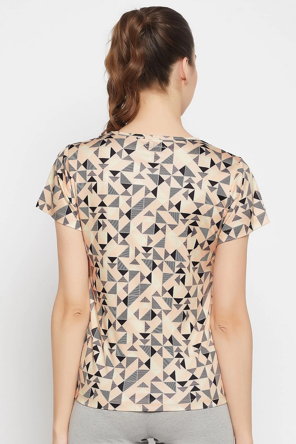 Comfort-Fit Geometric Print Active T-shirt In Peach Colour