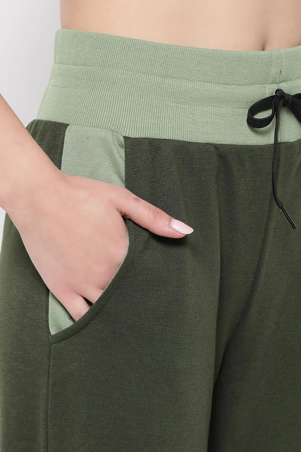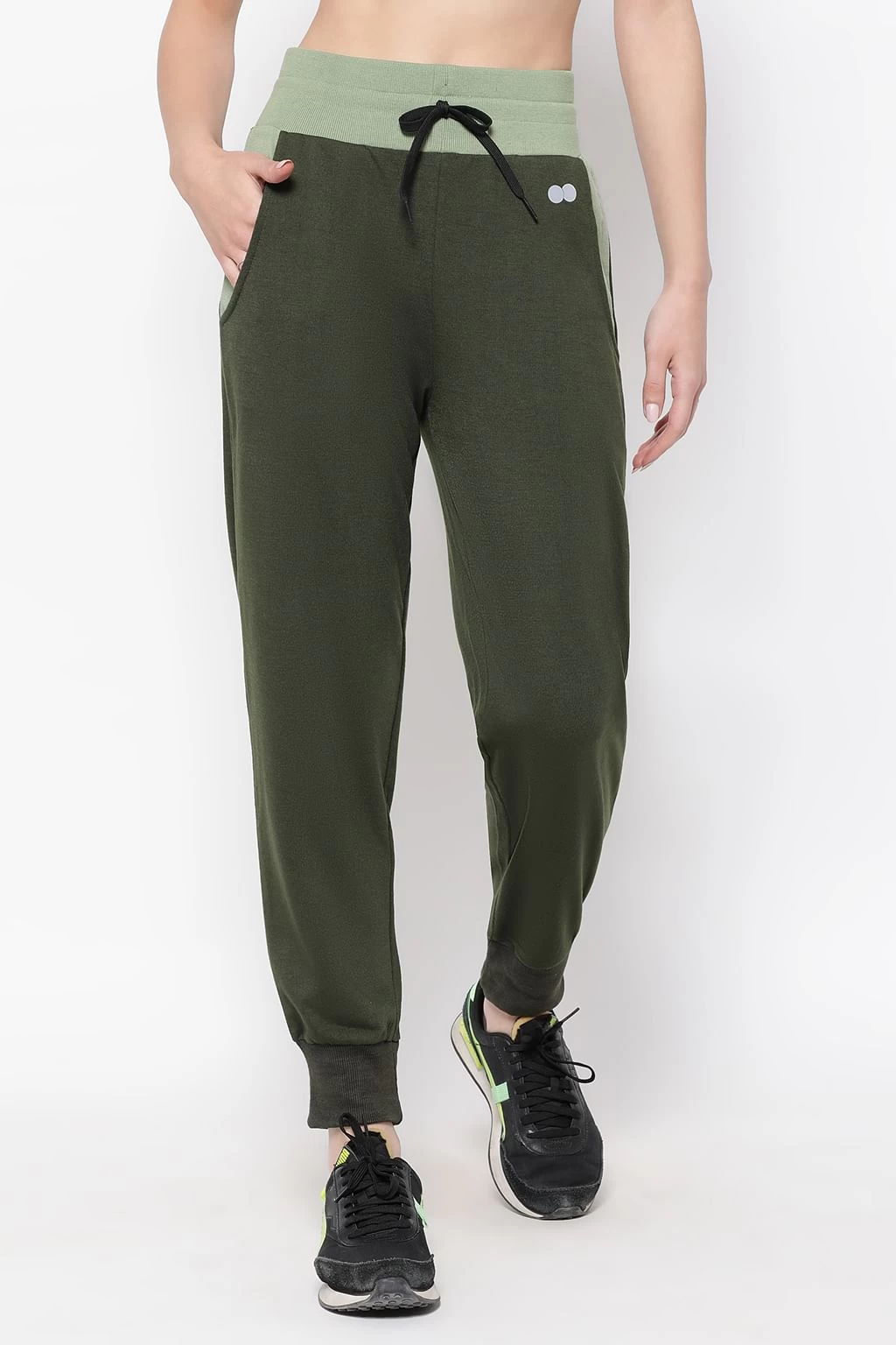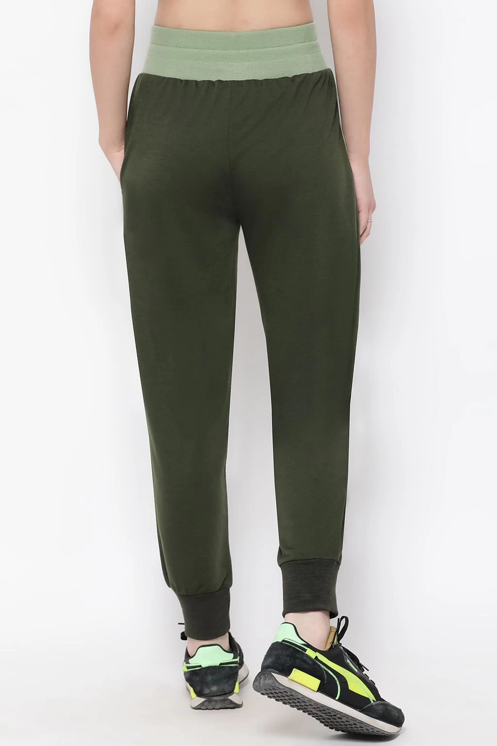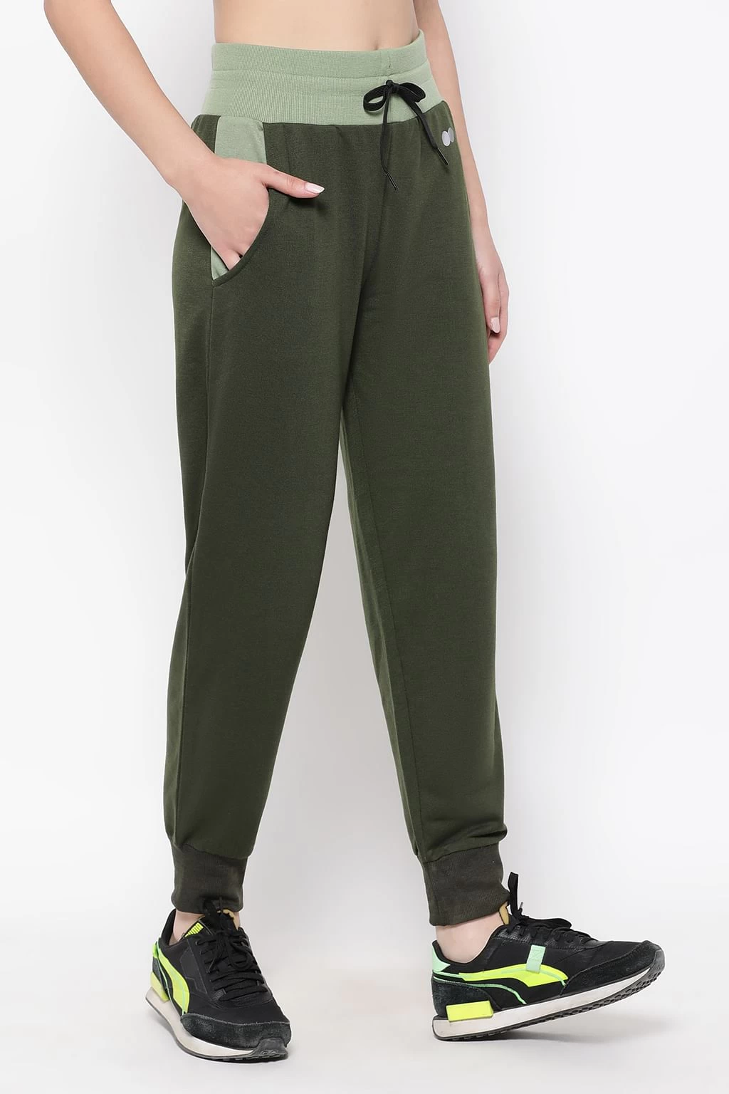Comfort Fit High Rise Active Joggers In Olive Green With Side Pockets