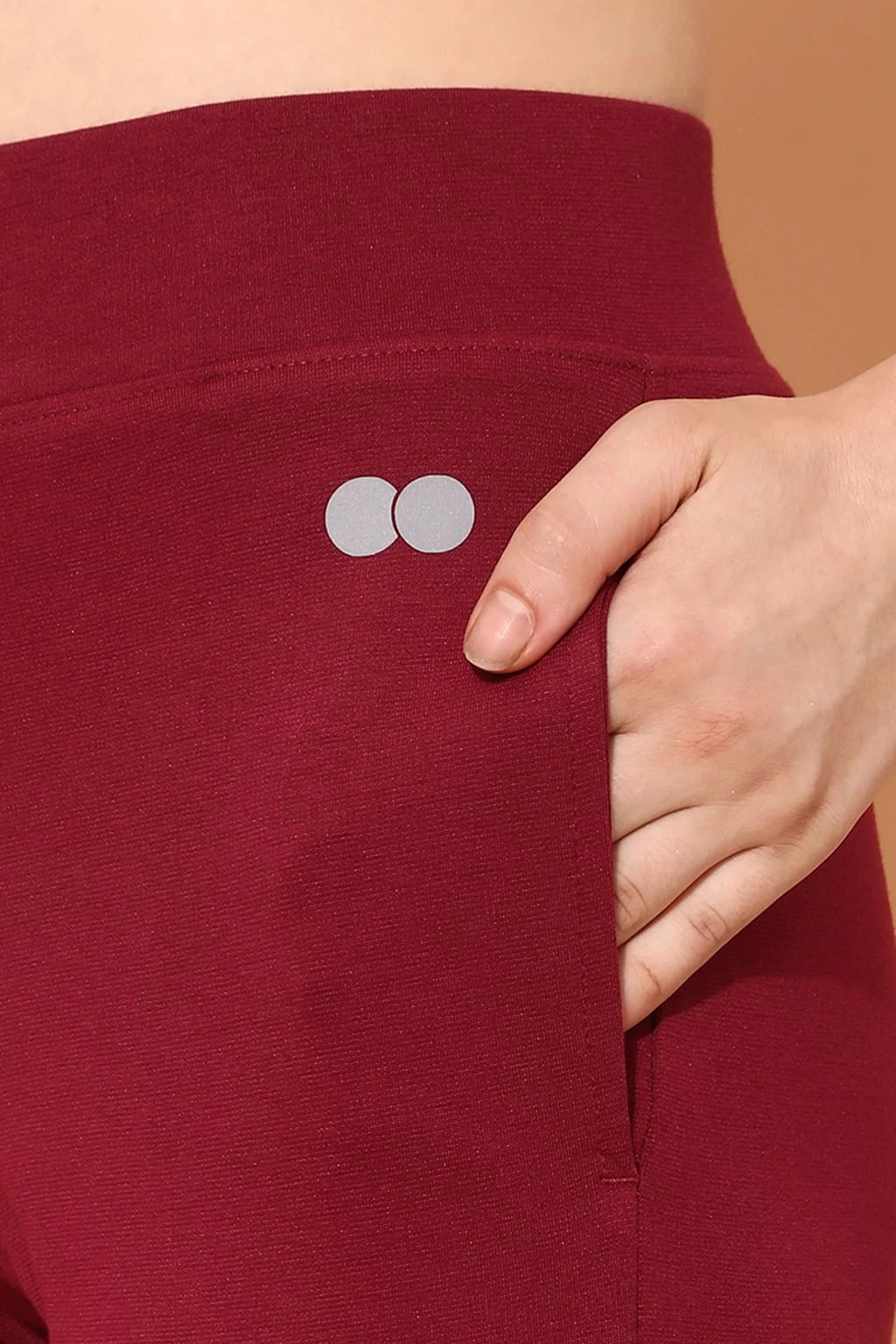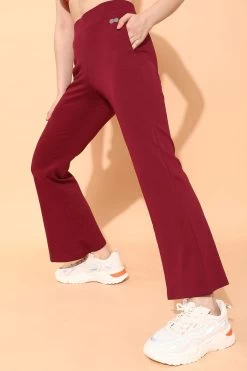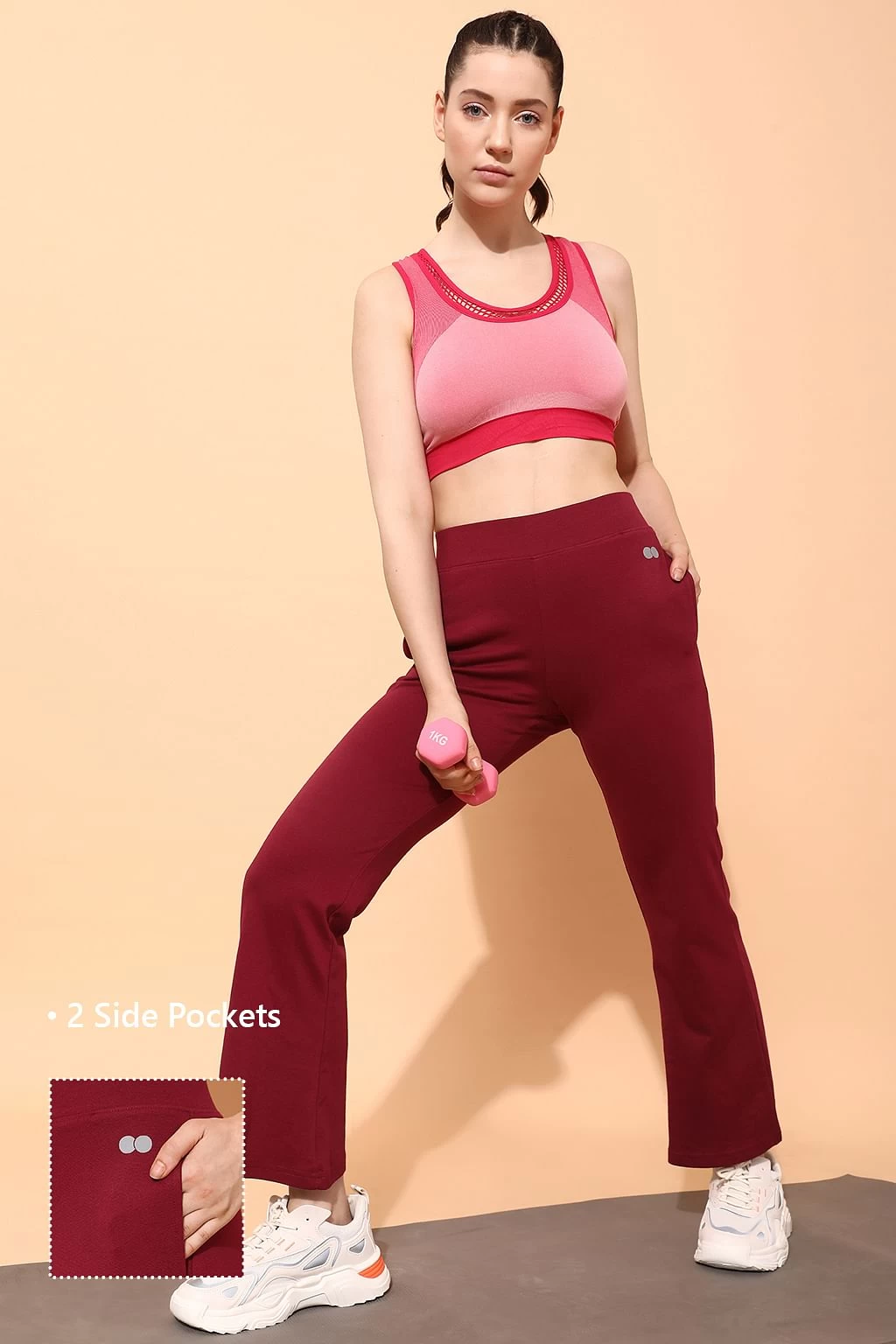 Comfort Fit High-Rise Flared Yoga Pants In Maroon With Side Pockets