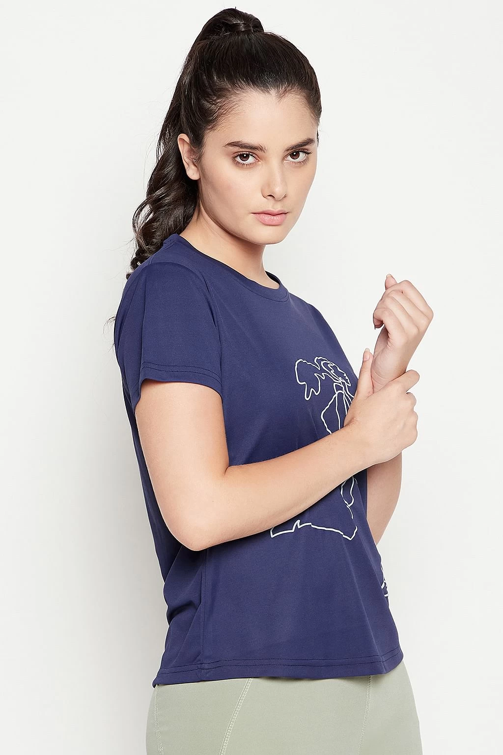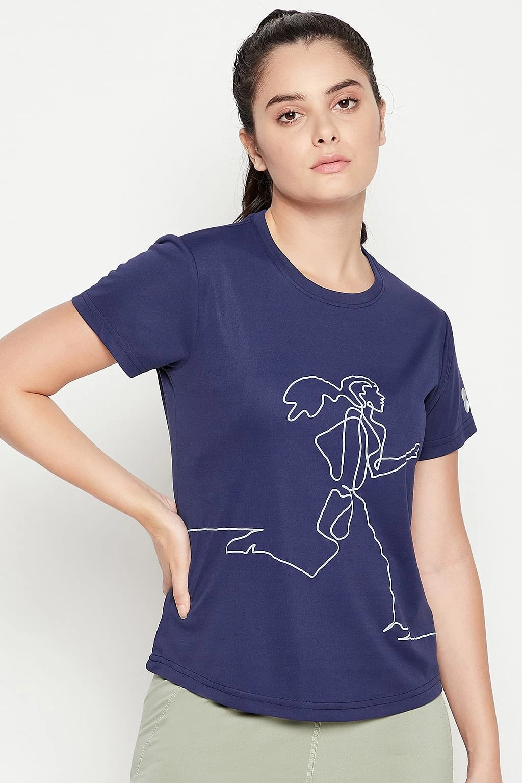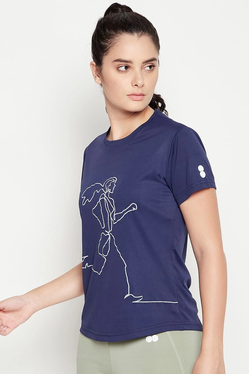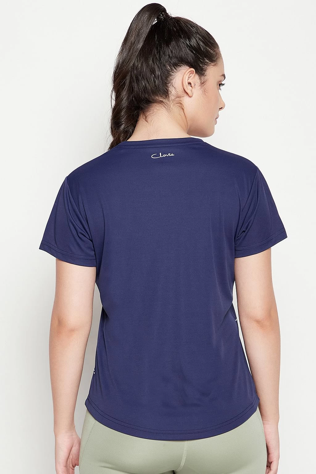 Navy blue comfort fit sports T-shirt crafted with 4-way stretch 100% polyester fabric that moves along with your movement.