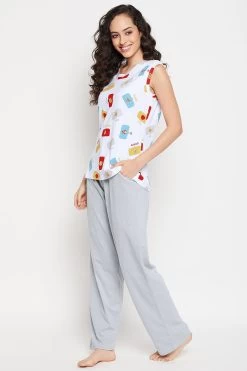 Be the first to review “Emoji Print Top In White & Chic Basic Pyjama In Grey – 100% Cotton” Cancel reply
