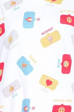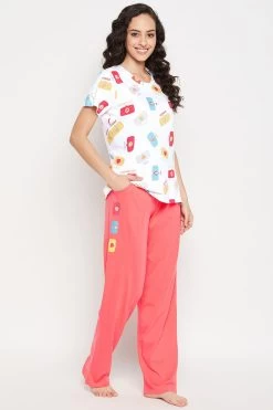 Emoji Print Top In White & Chic Basic Pyjama In Peach Colour – 100% Cotton