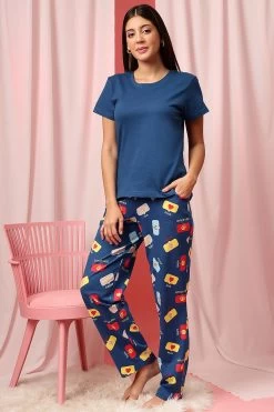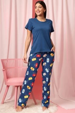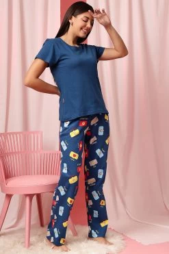 Navy top & pyjama set crafted with soft & premium 100% cotton fabric.