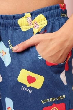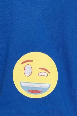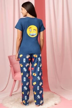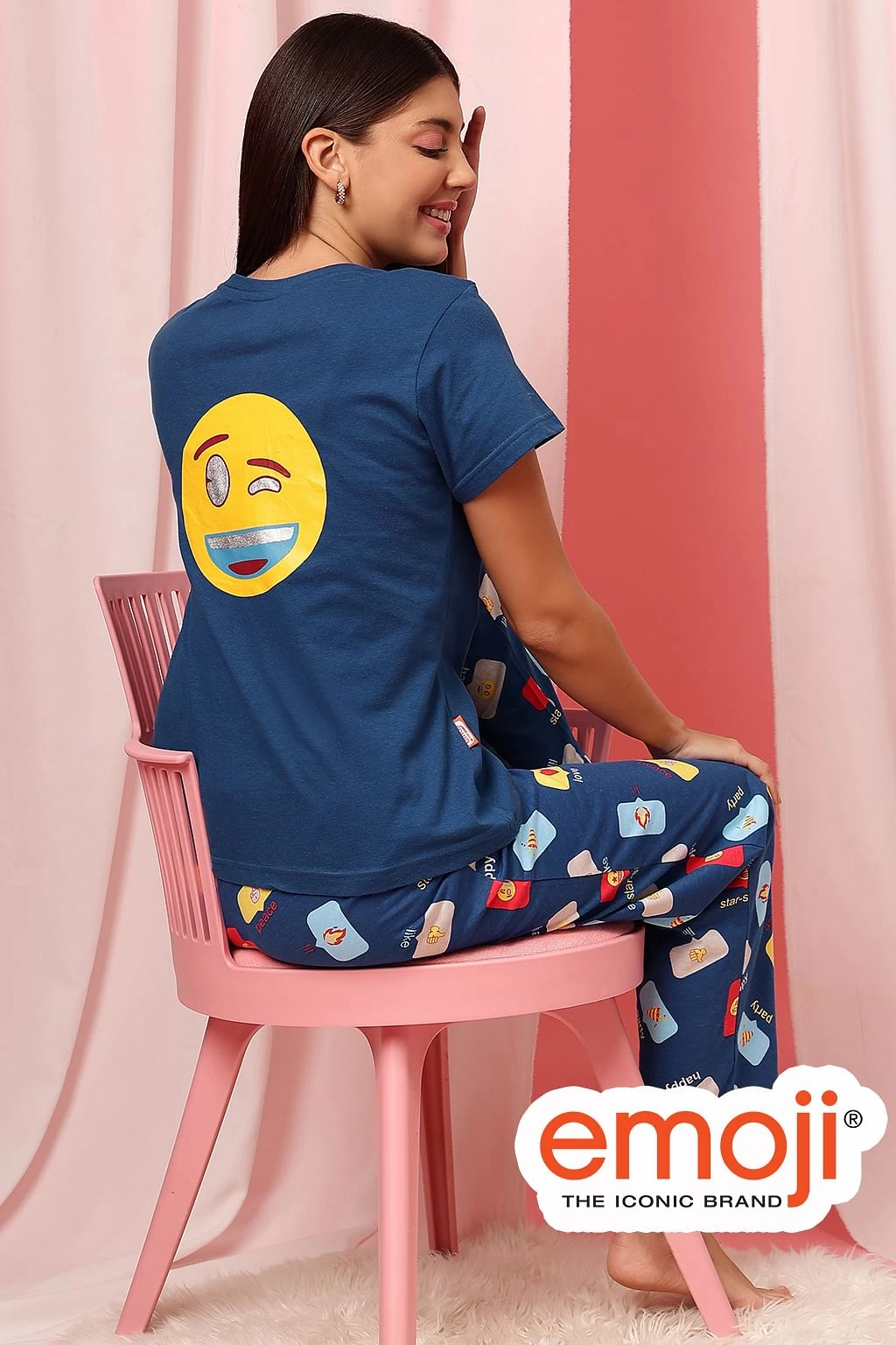 Emoji Print Top & Pyjama Set In Navy – 100% Cotton