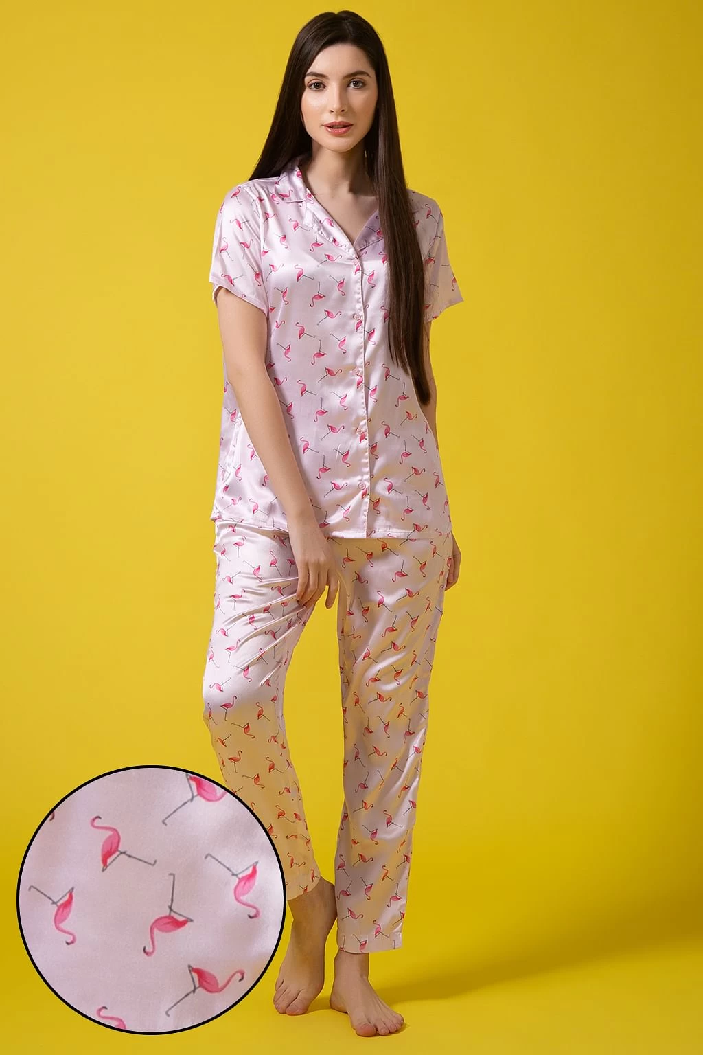 Be the first to review “Flamingo Print Button Down Shirt & Pyjama Set In Soft Pink – Satin” Cancel reply