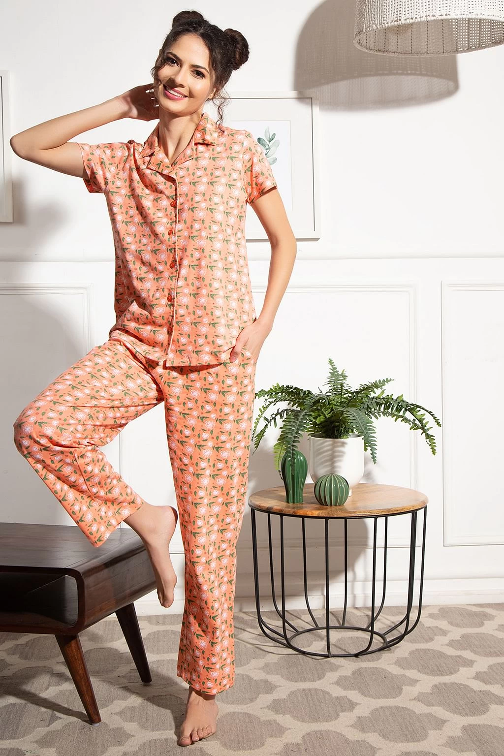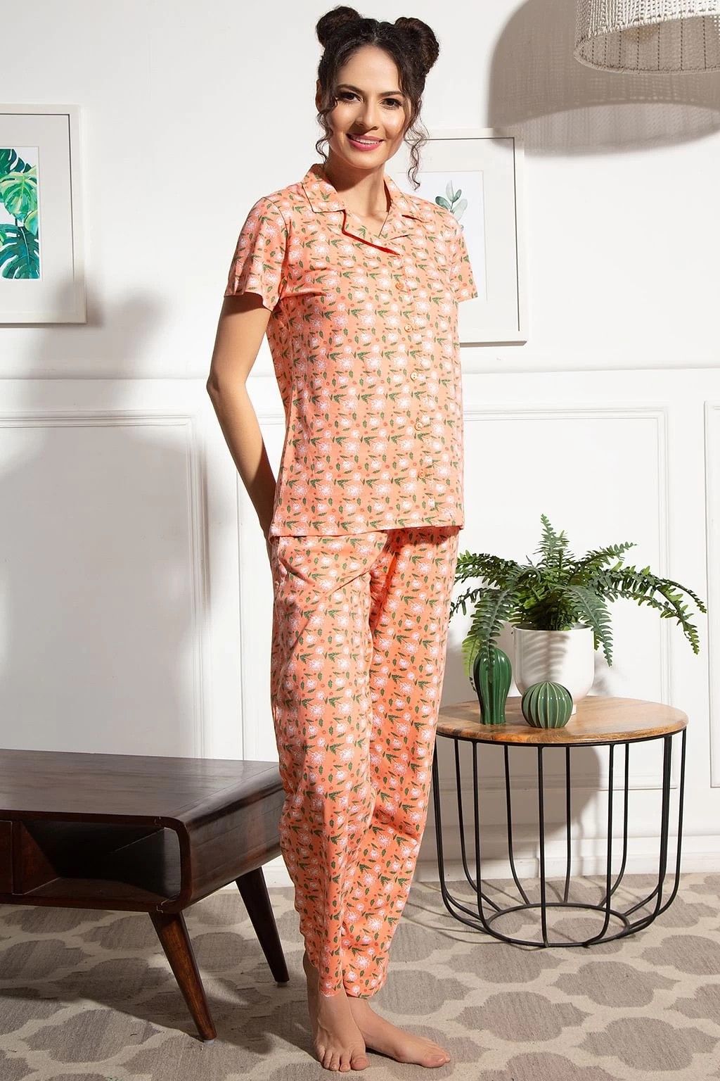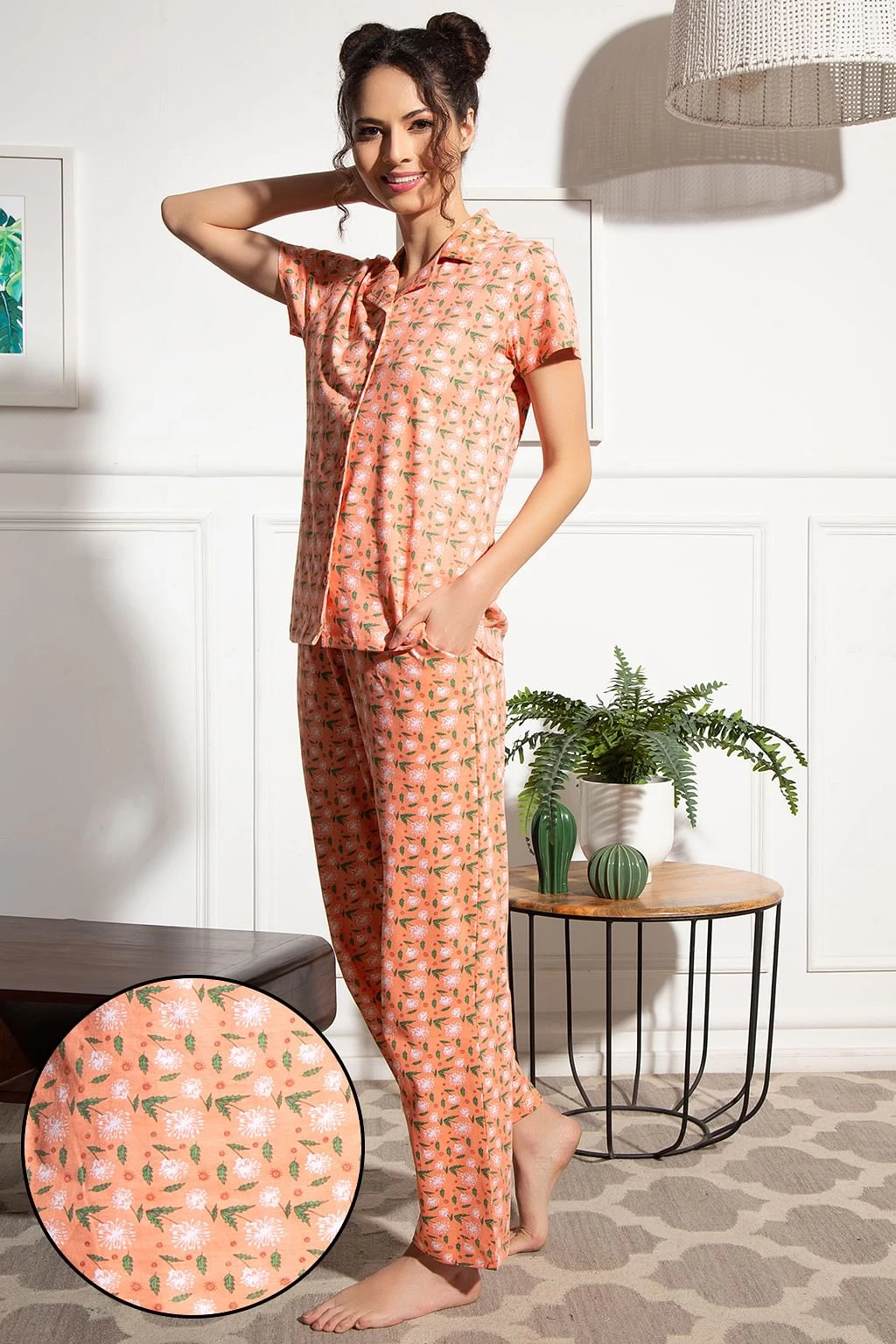 Be the first to review “Floral Print Button Down Shirt & Pyjama Set In Peach Colour – 100% Cotton” Cancel reply
