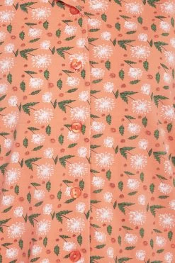 Floral Print Button Down Shirt & Pyjama Set In Peach Colour – 100% Cotton