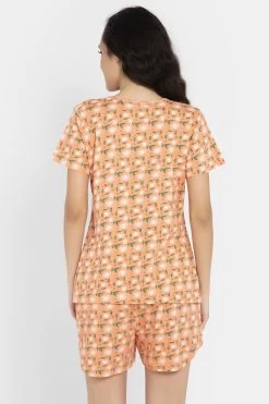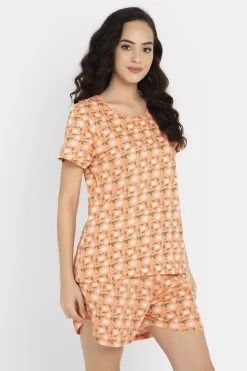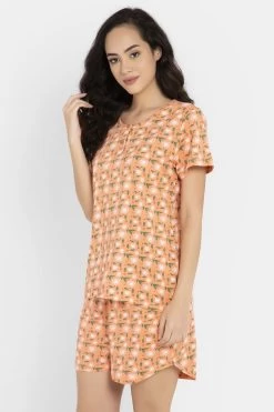 Peach coloured top & shorts set crafted with 100% cotton fabric.