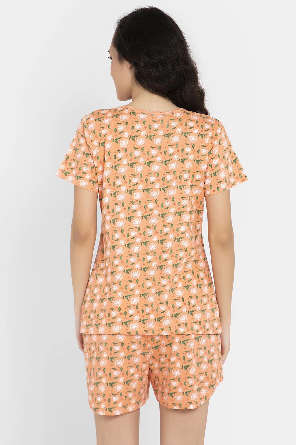 Floral Print Top & Shorts Set In Peach Colour – 100% Cotton