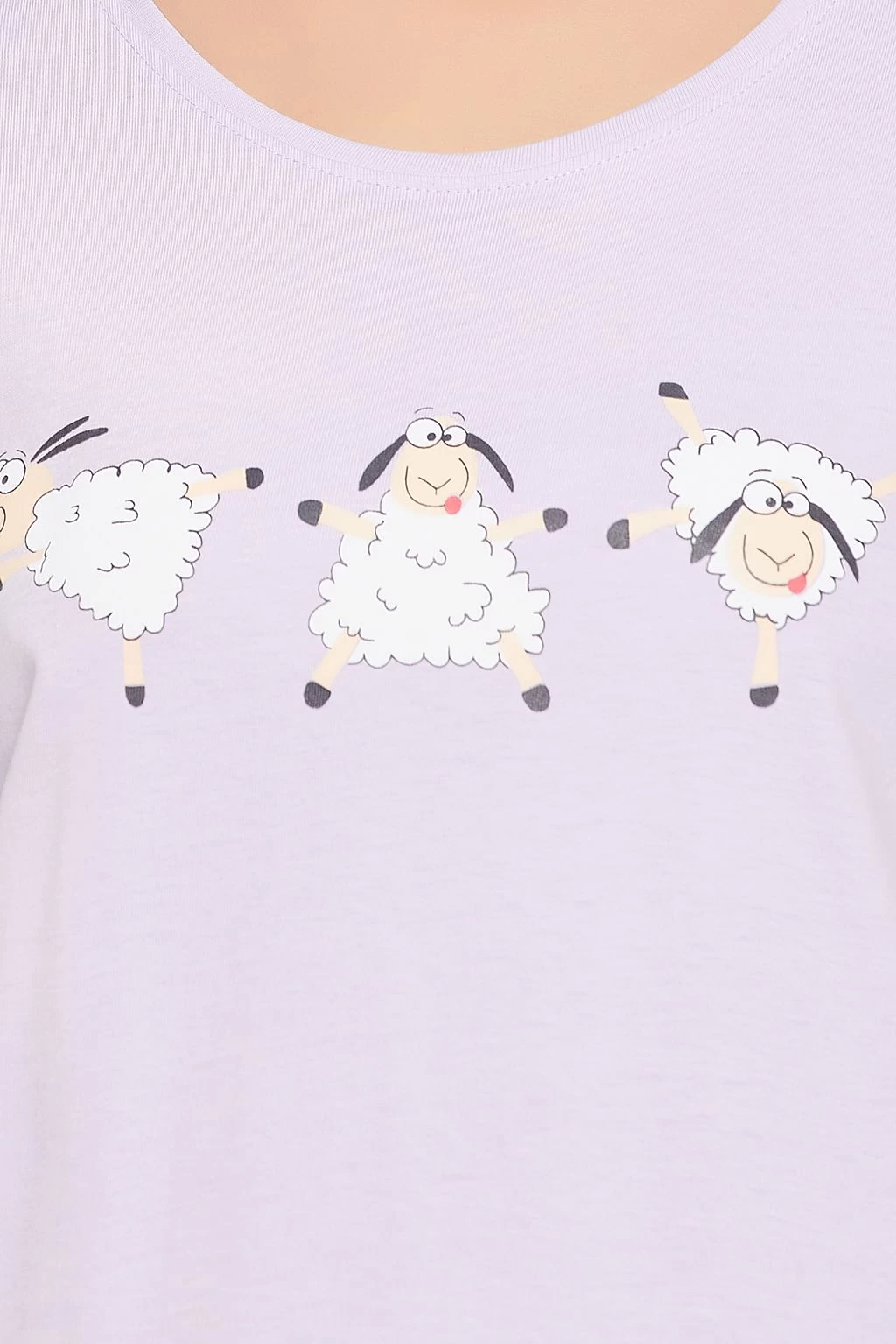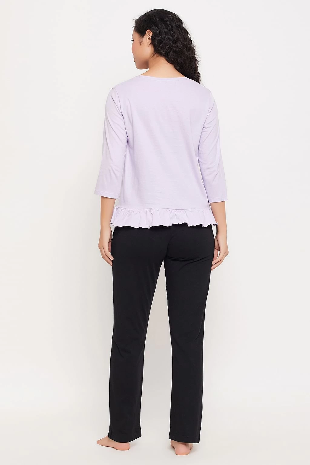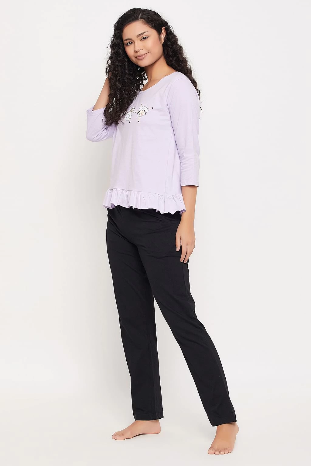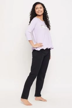 Graphic Print Top In Lilac & Chic Basic Pyjama In Black – 100% Cotton