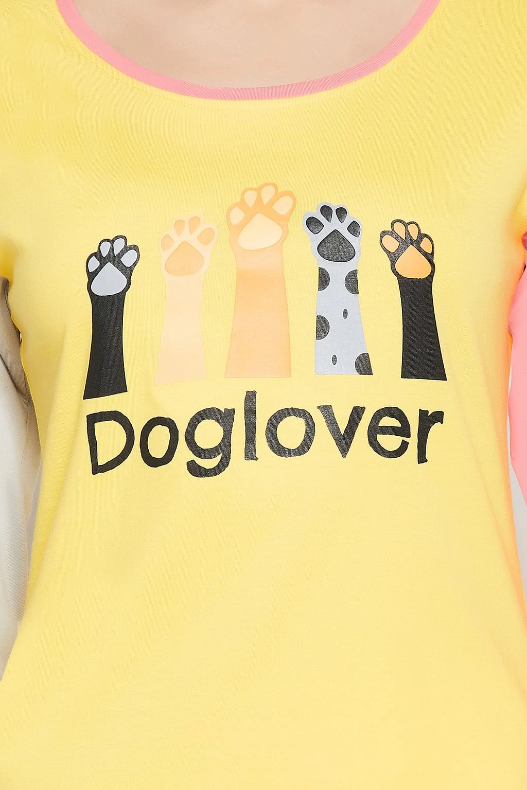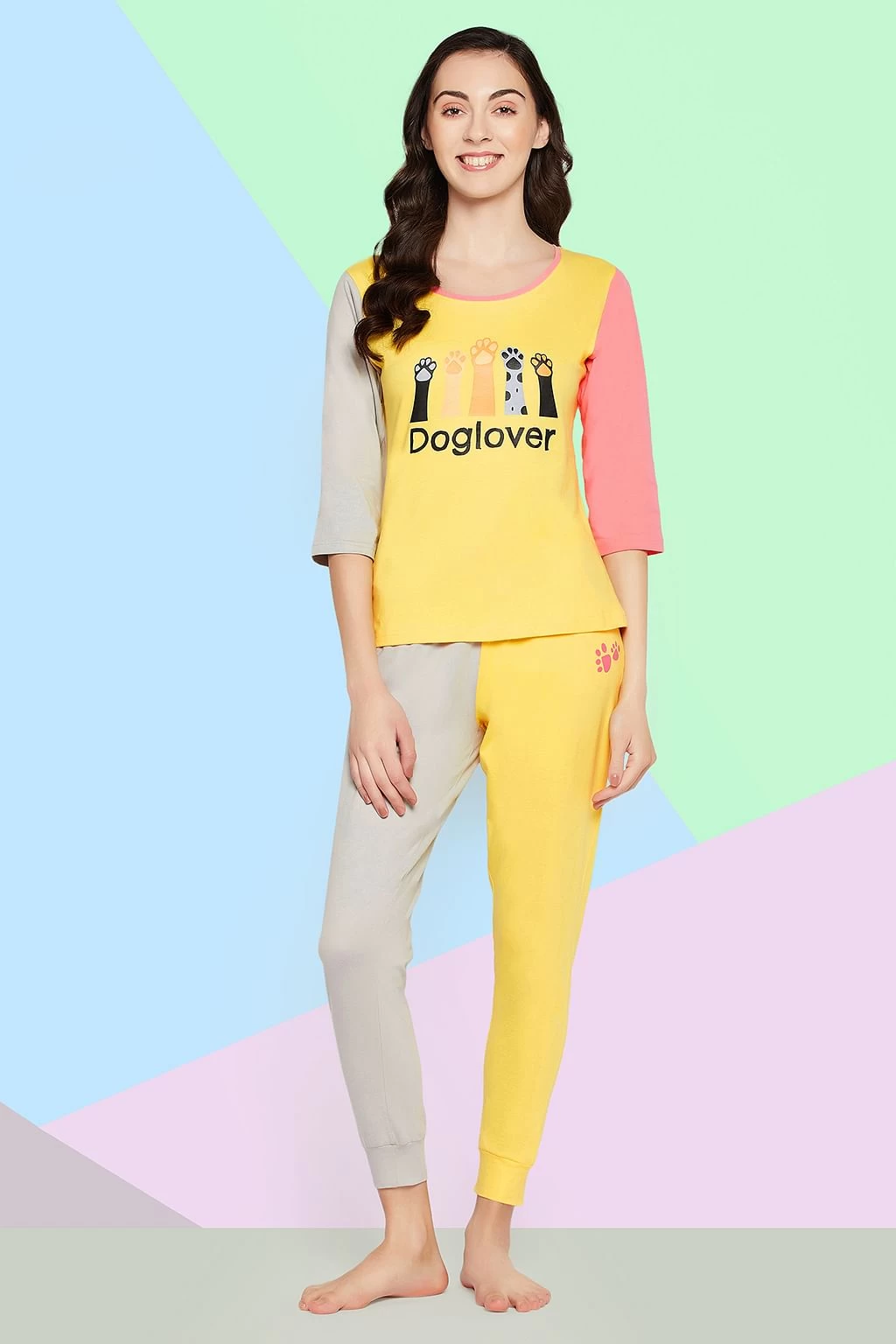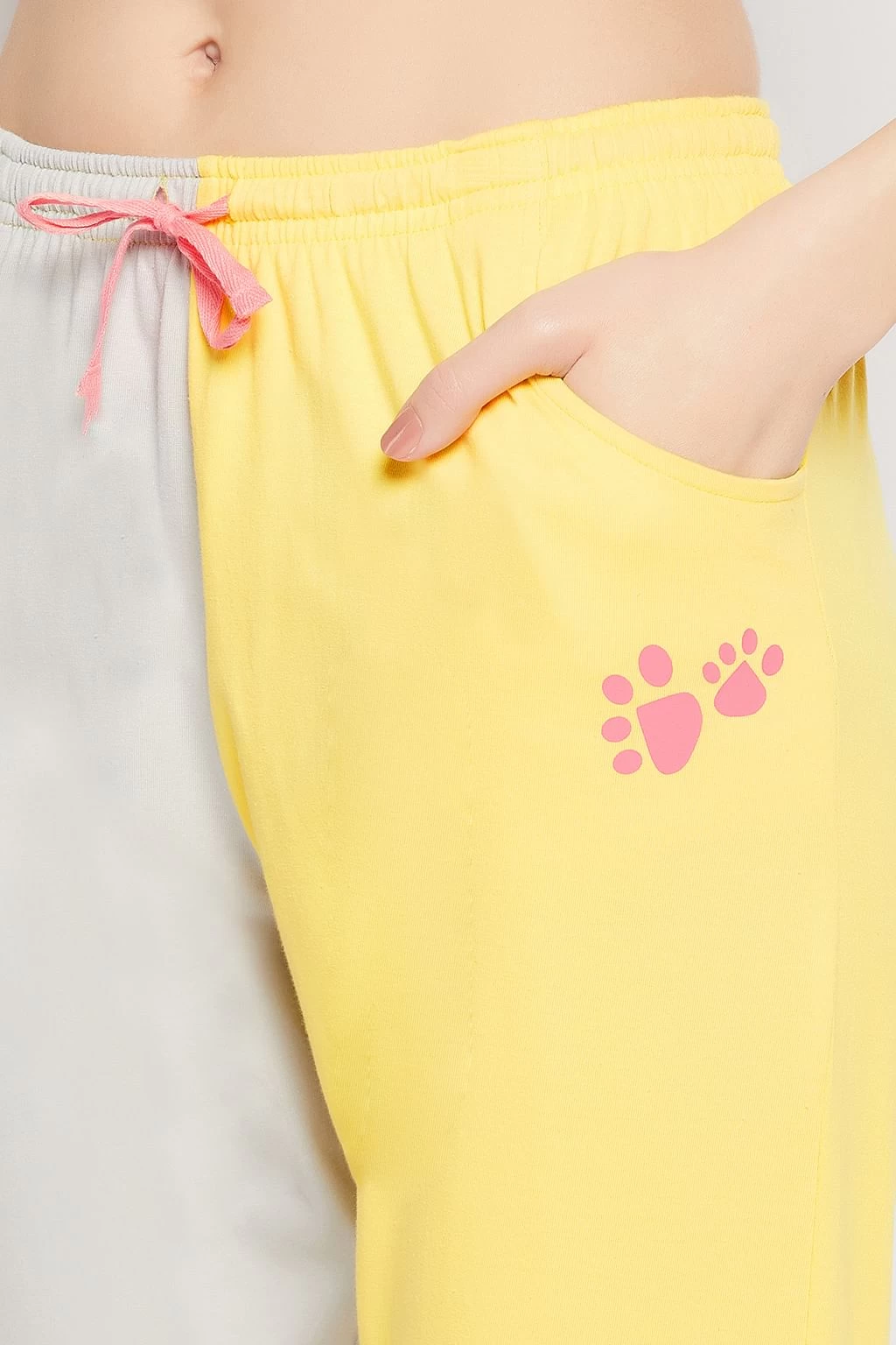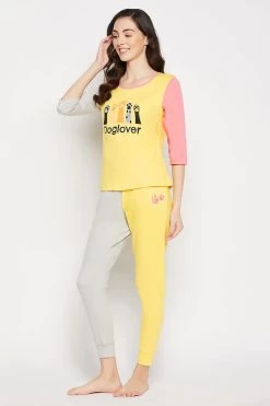 Graphic & Text Print Colourblocked Top & Joggers Set In Yellow – 100% Cotton