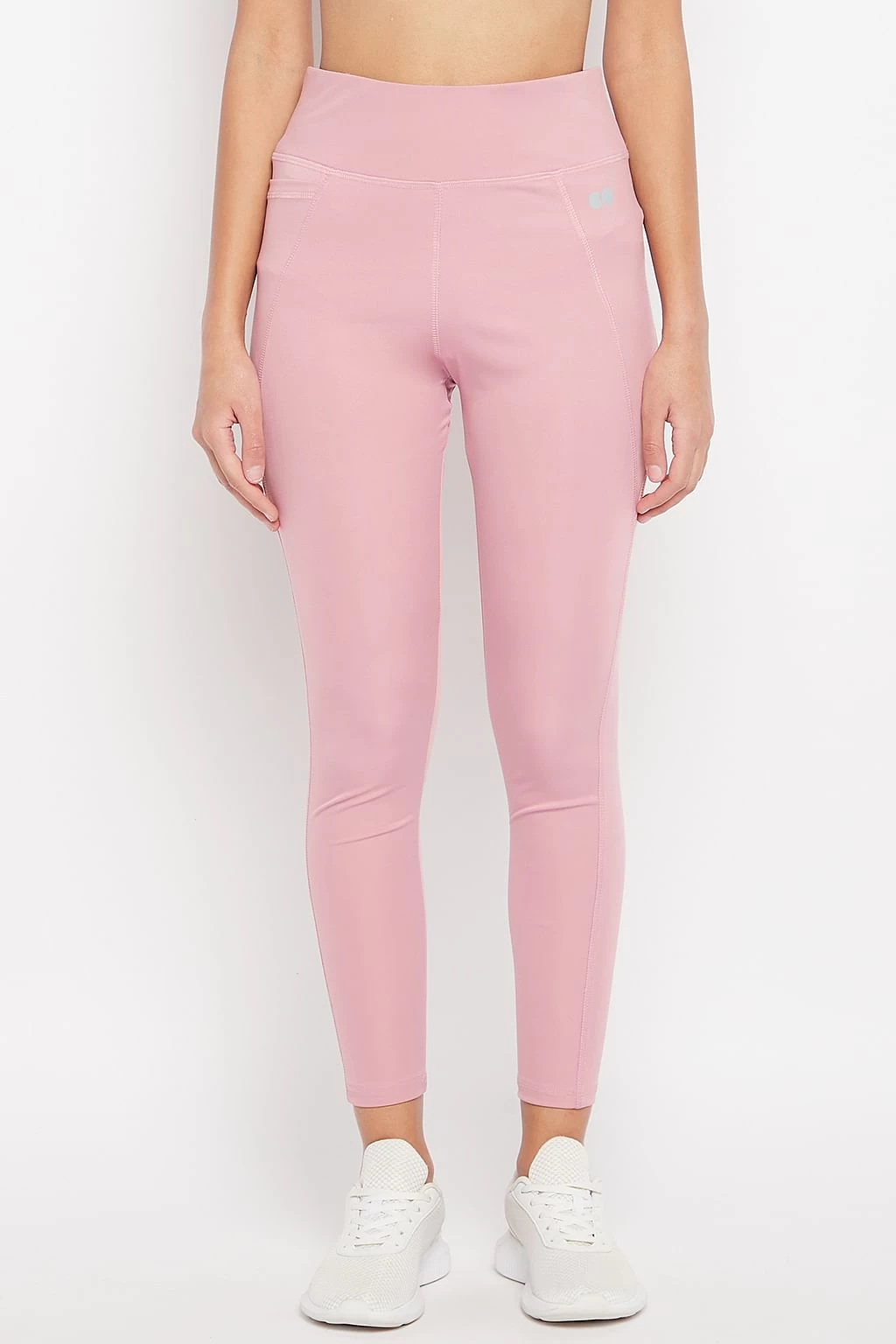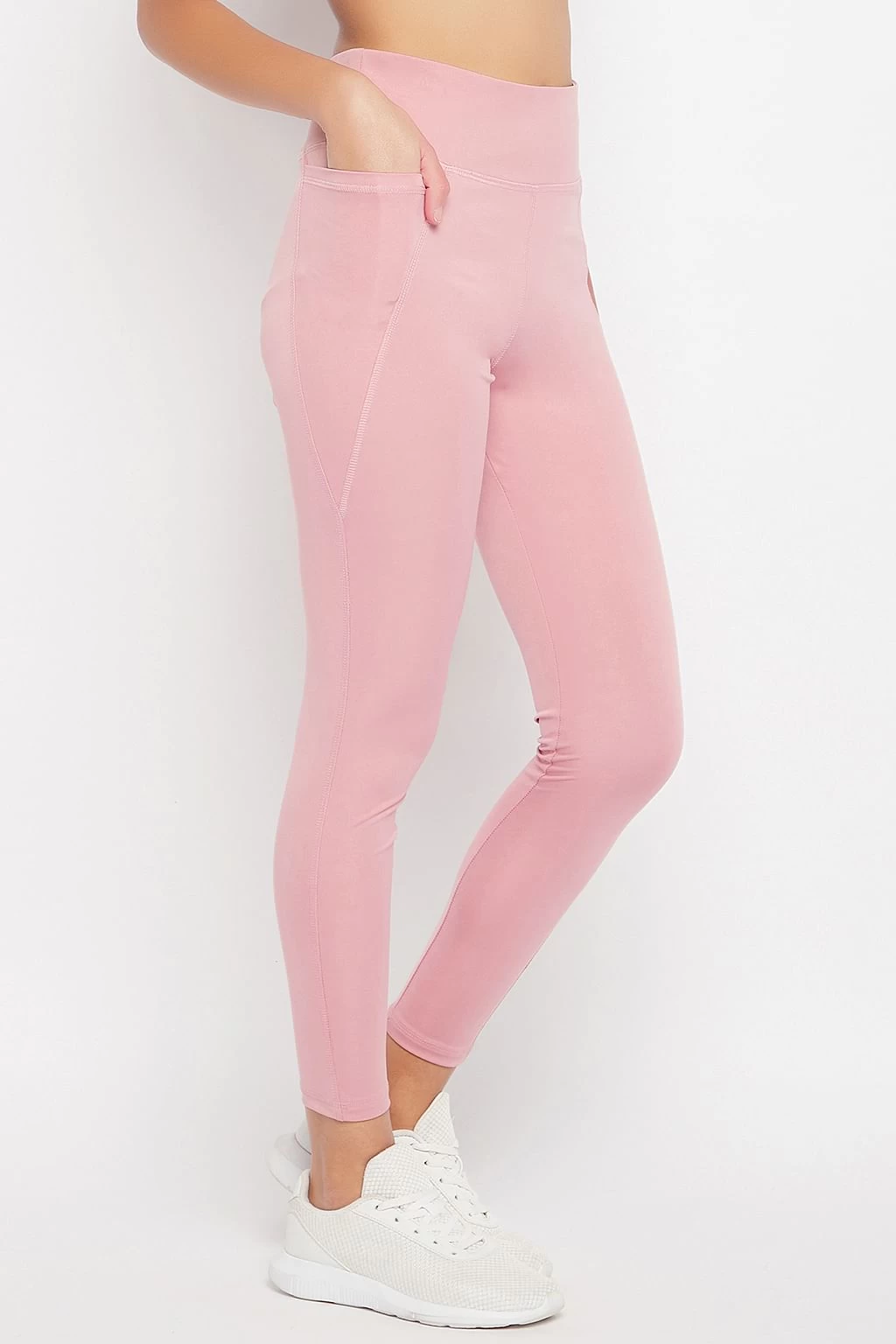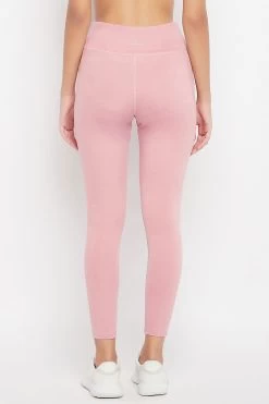 High-Rise Ankle-Length Active Tights In Baby Pink With Side Pocket
