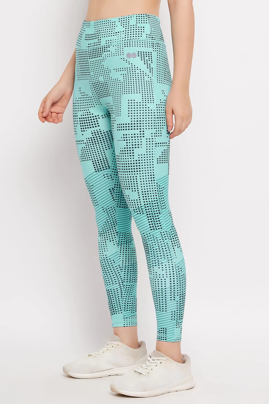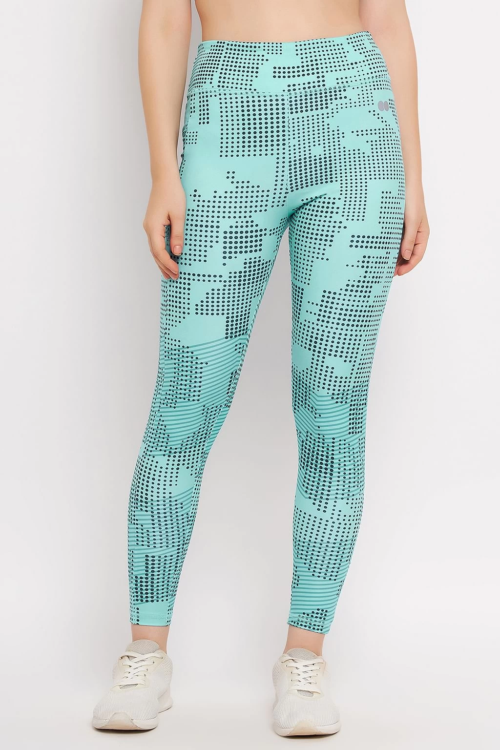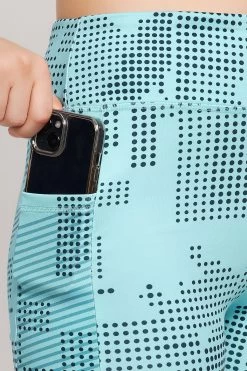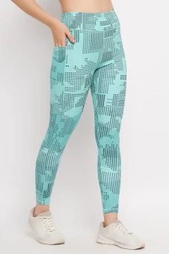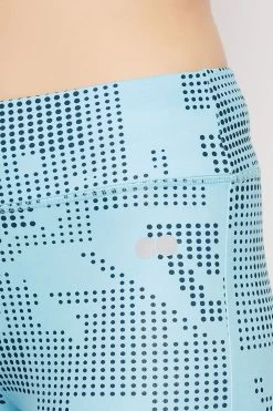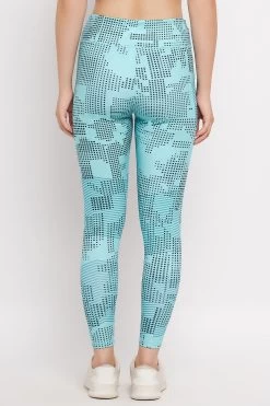 High Rise Printed Active Tights In Sky Blue With Side Pocket