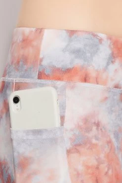 High Rise Tie-Dye Print Active Tights In Grey With Side Pocket