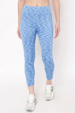 Medium Impact Padded Printed Sports Bra & High Rise Active Tights With Side Pocket In Sky Blue