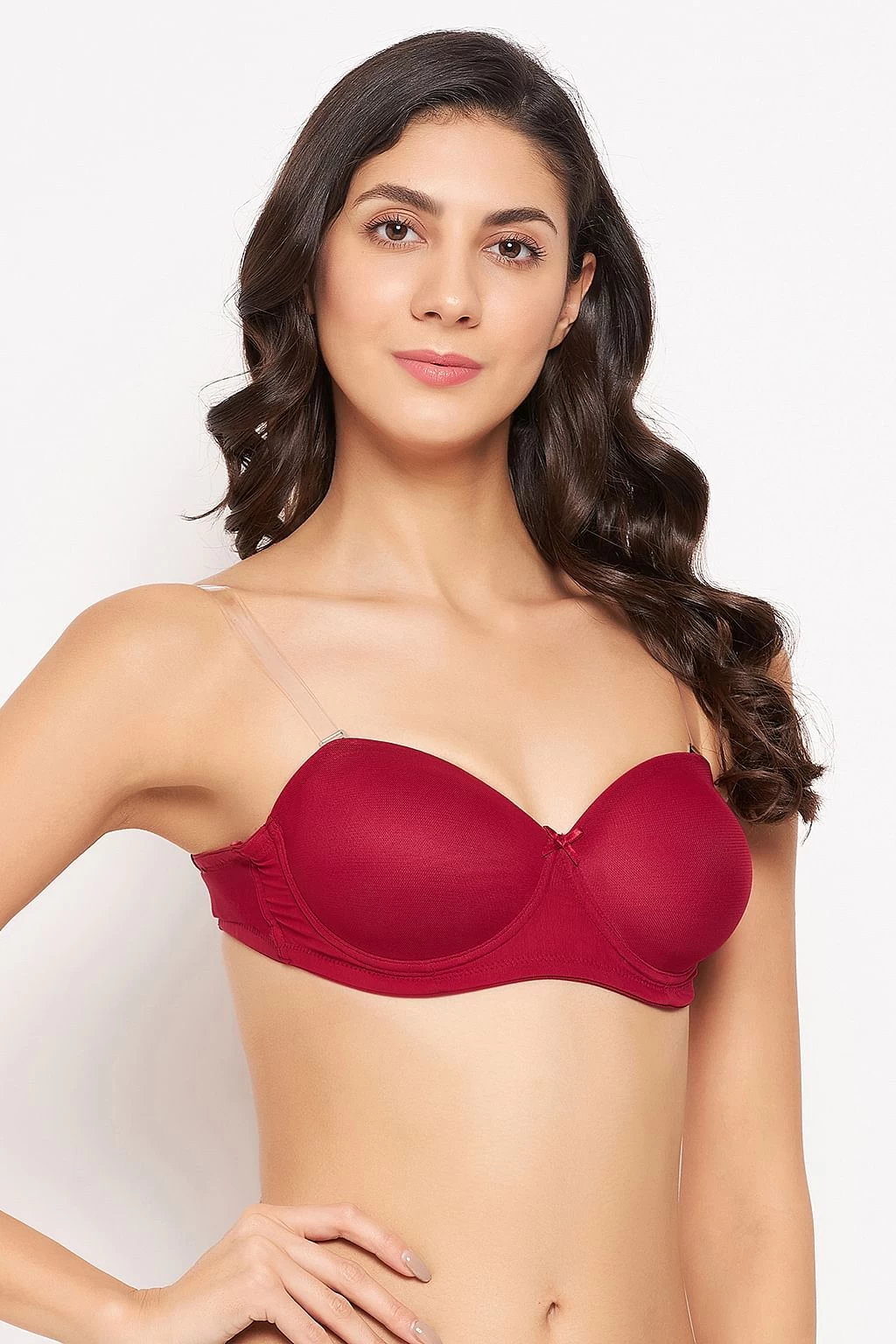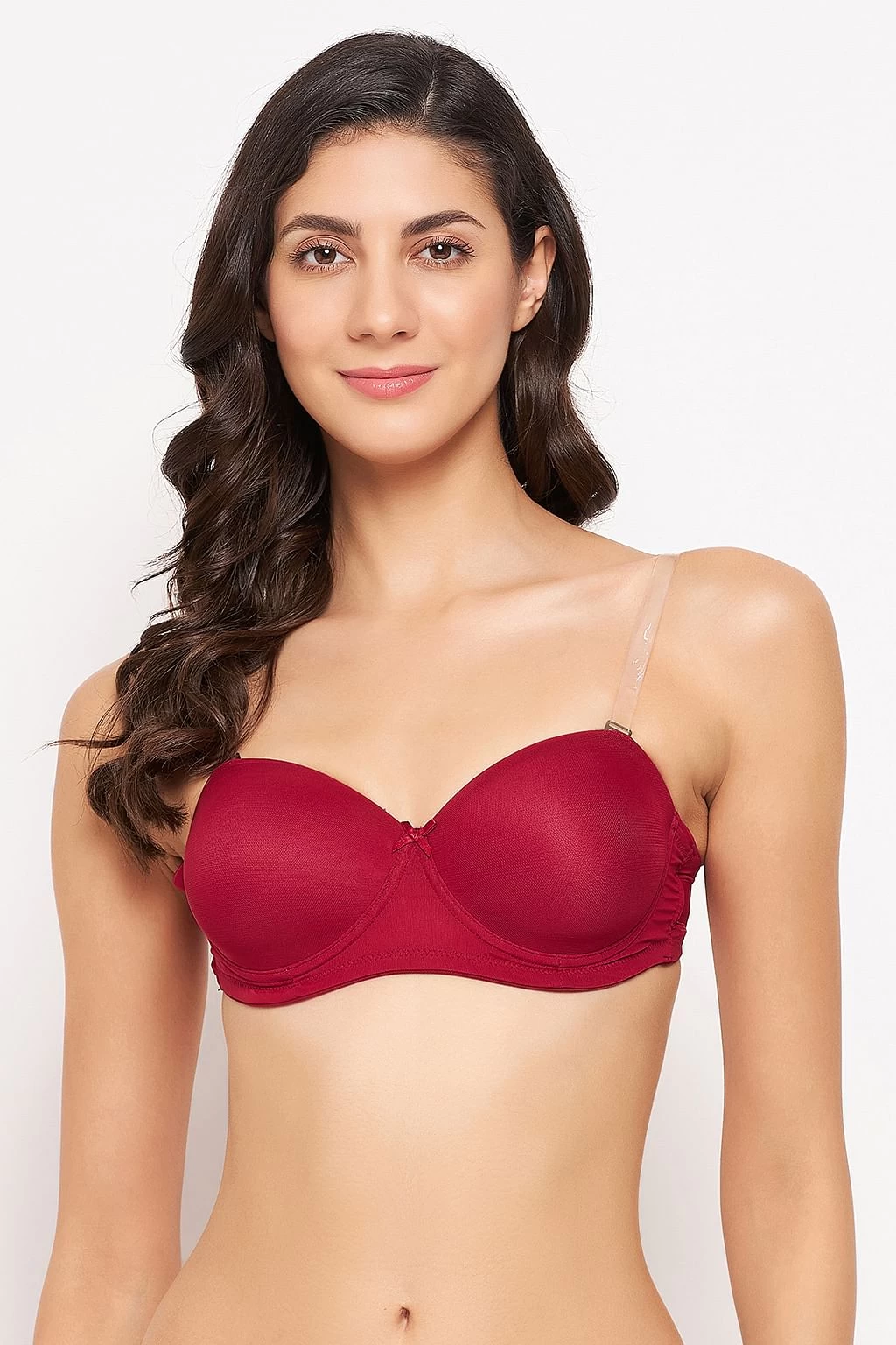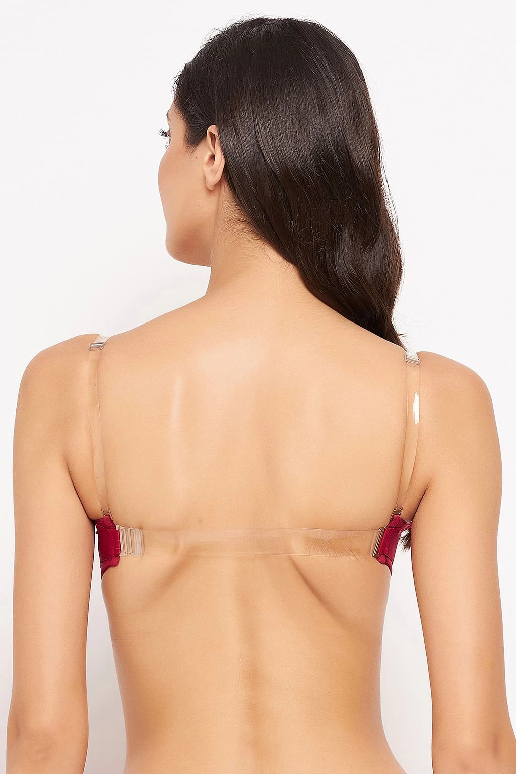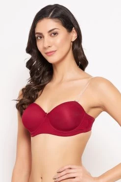 Invisi Padded Underwired Full Cup Strapless Balconette Bra In Maroon With Transparent Straps & Band