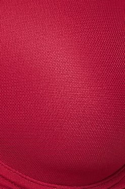 Maroon balconette bra with padded cups to protect modesty.