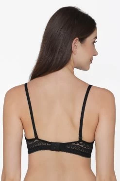 Secured with double hook and eye closures in smaller cups and triple hook and eye closure in bigger cups.