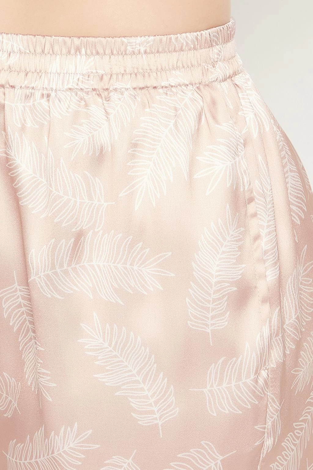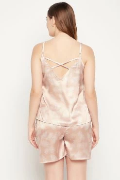 Leaf Print Cami Top & Shorts Set In Beige – Satin