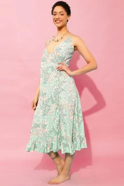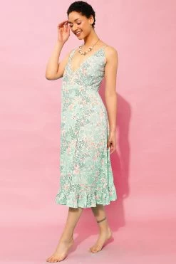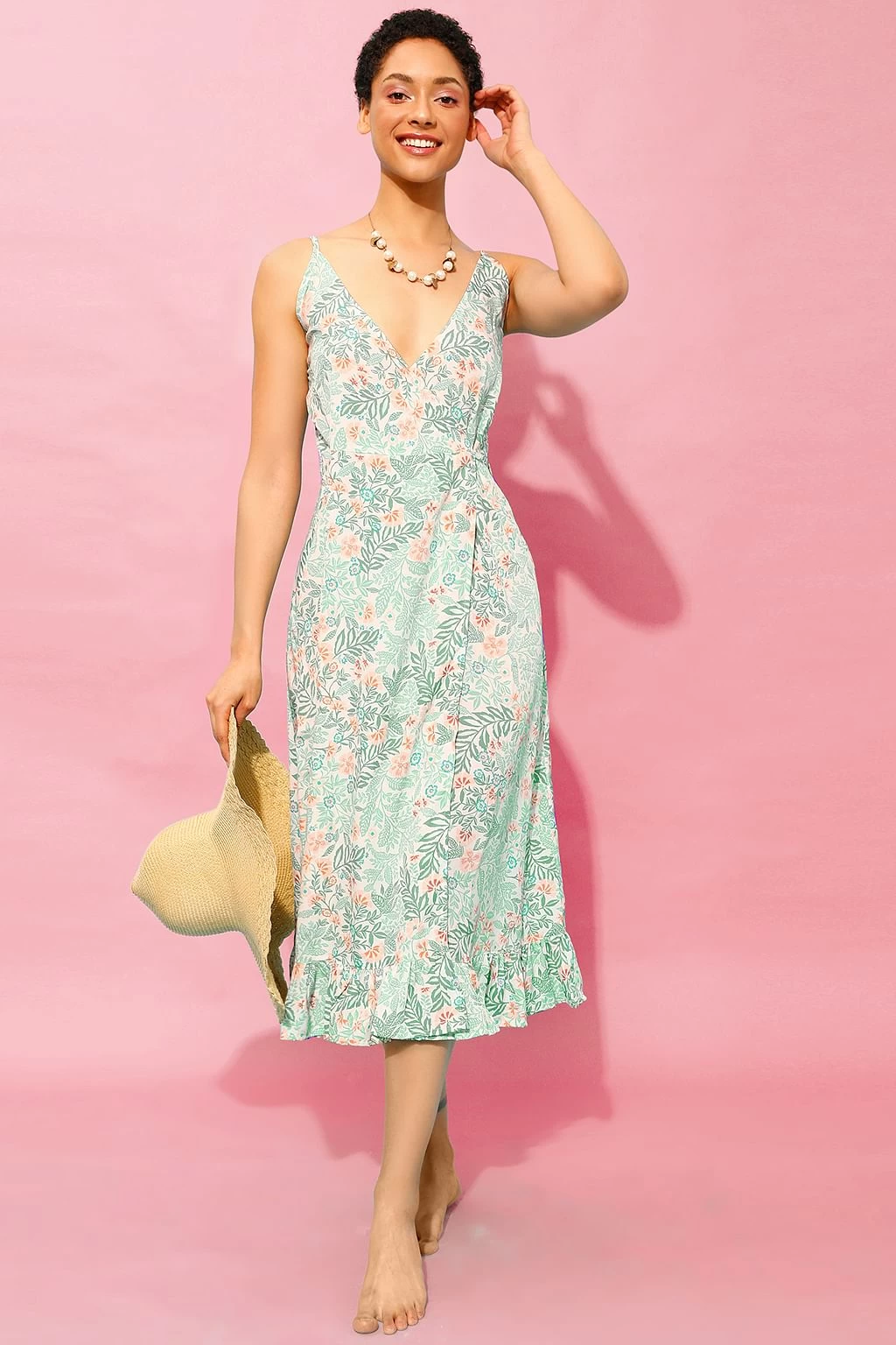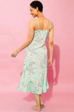 Has a deep V-neckline with spaghetti straps & a deep elasticated back.