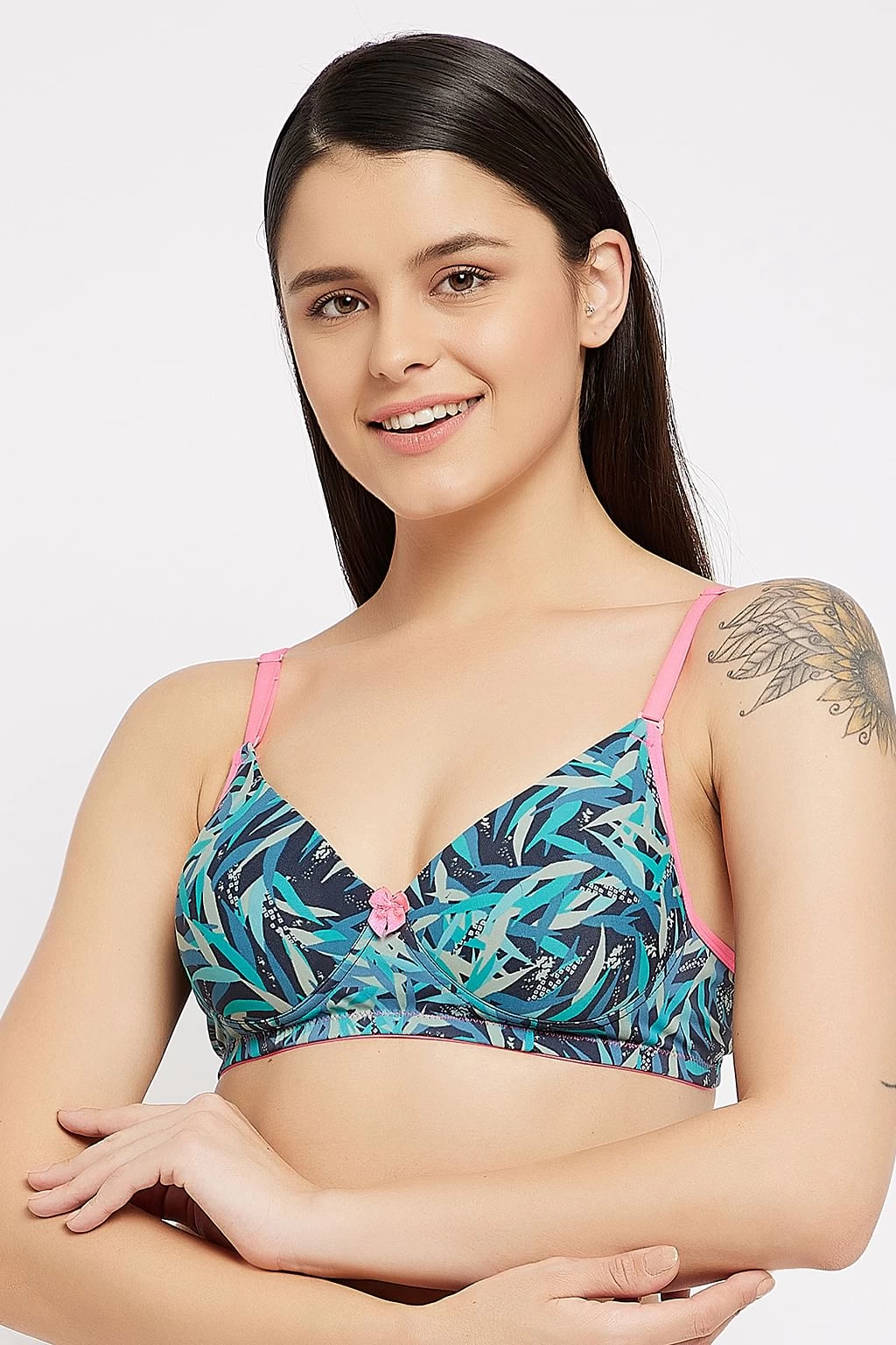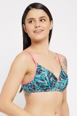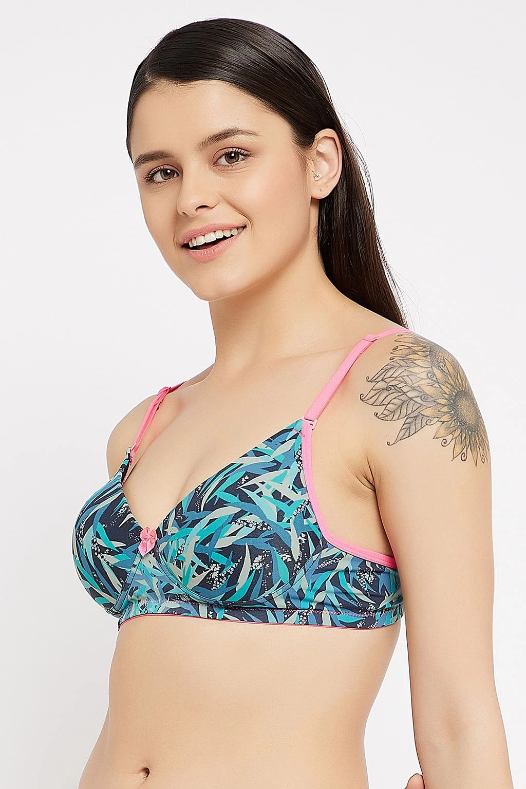 Navy T-shirt bra crafted with smooth polyamide fabric.