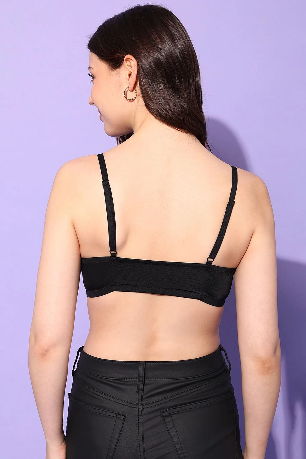 Black bra with padded cups to protect modesty.