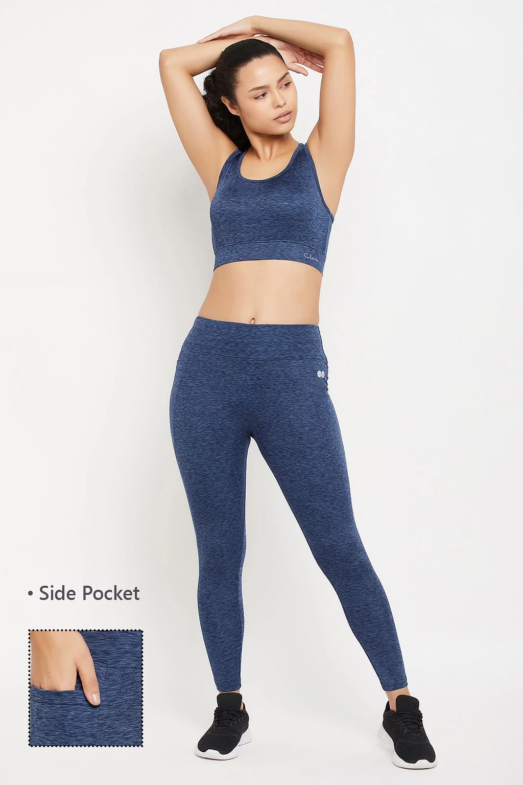 Be the first to review “Medium Impact Padded Active Sports Bra & High Rise Active Tights With Side Pocket In Navy Melange” Cancel reply